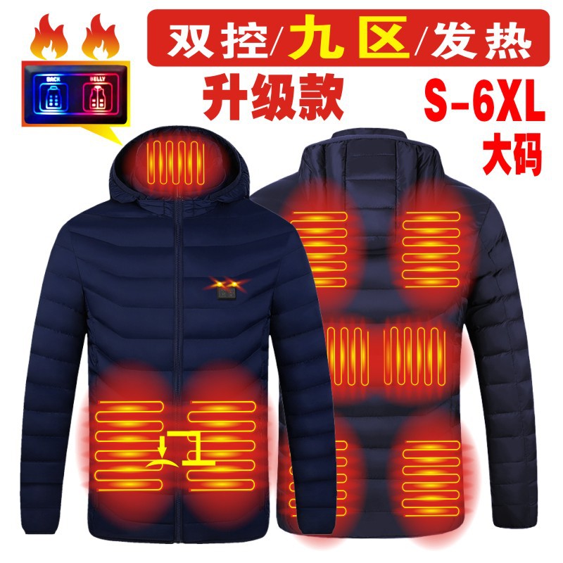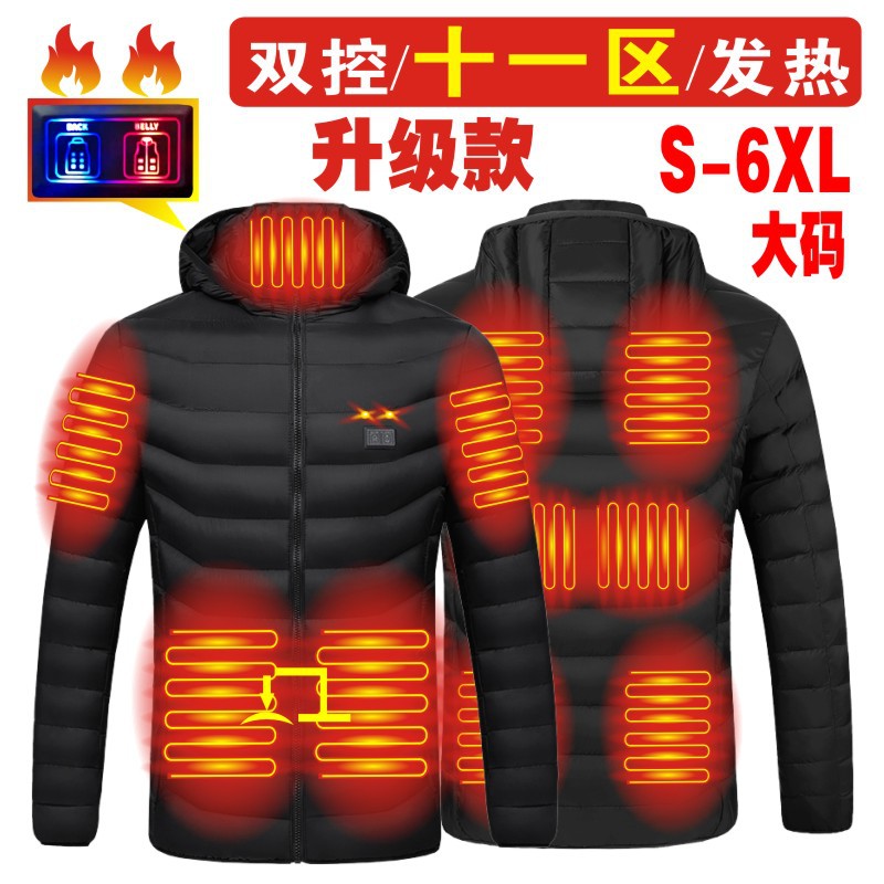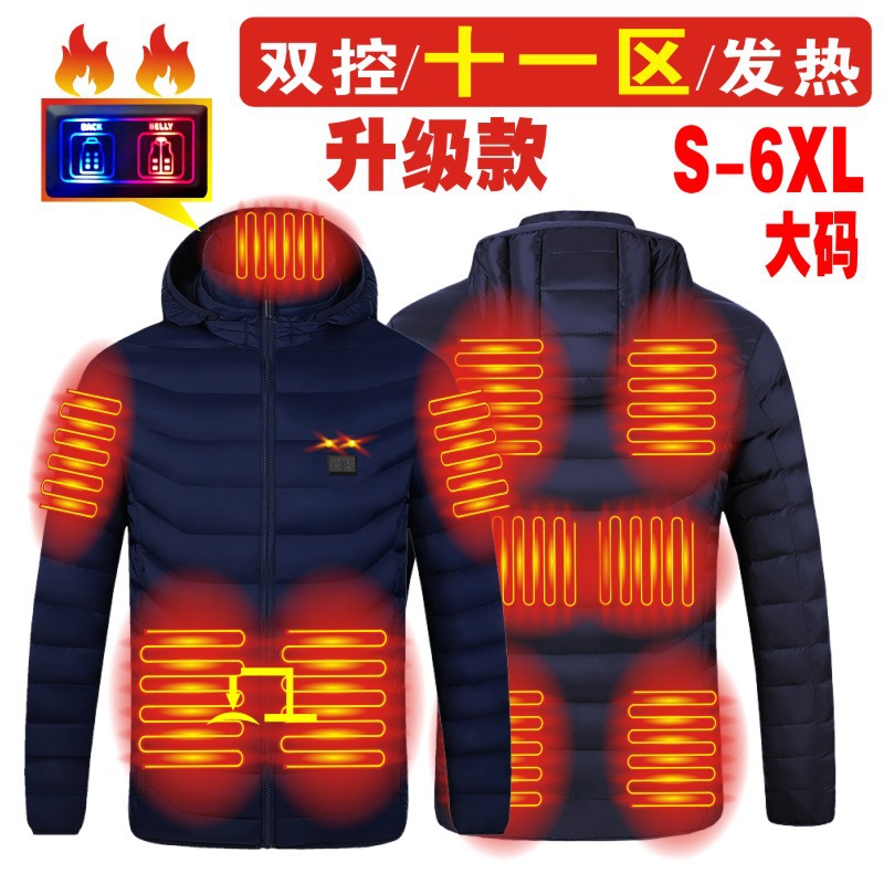 Трансграничная нагревательная одежда с хлопковой подкладкой, мужчины и женщины могут носить нагревательную одежду, интеллектуальное нагревательное пальто с постоянной температурой, двойное управление, 11 зон нагрева плюс размер