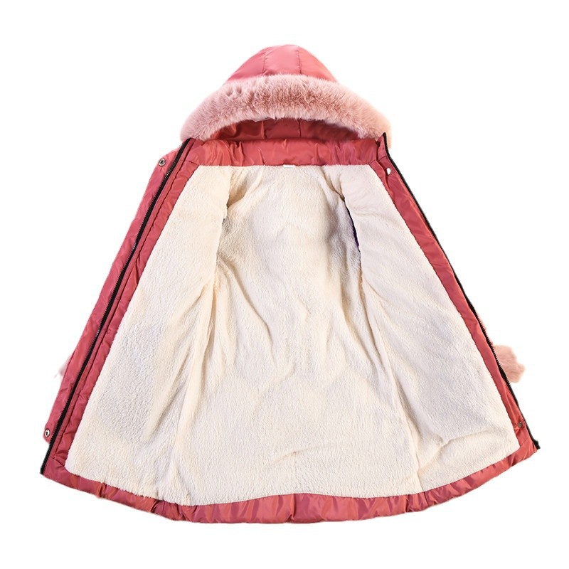 Детская одежда для трансграничной внешней торговли, зимнее однотонное длинное хлопковое пальто для корейских девочек, пальто с меховым воротником в иностранном стиле