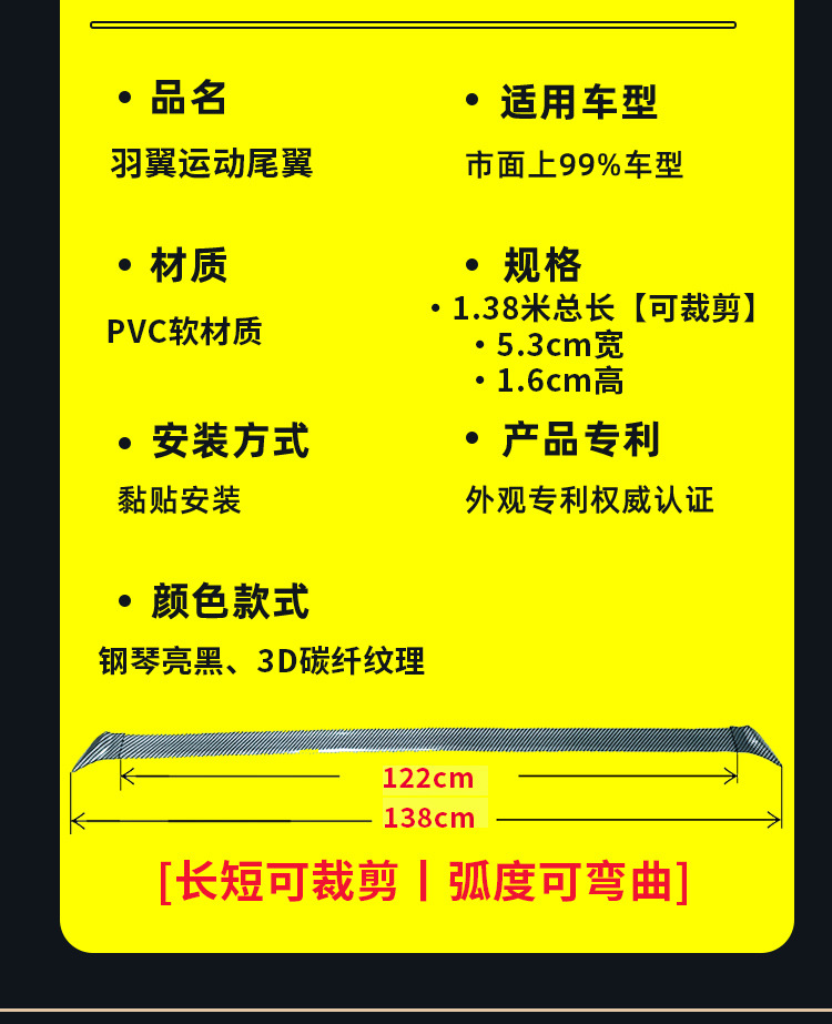 Спортивный клинок [Углеродное волокно черный-6 см шириной]; Спортивная модель лезвия [высокая яркая черная ширина-6 см]; Спортивные крылья-углеродное волокно; Крыло спорт-яркий черный; Длинный пункт [матовый черный-4 см ширина]; Длинный пункт [матовый черный-5 см ширина]; Длинный пункт [углеродное волокно черный-4 см ширина]; Длинный пункт [углеродное волокно черный-5 см ширина]; Длинный пункт [высокий свет черный-4 см ширина]; Длинный пункт [высокий свет черный-5 см ширина]