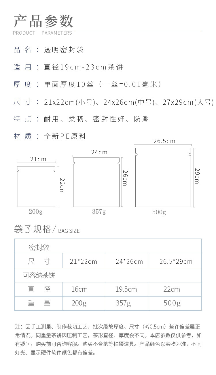 Прозрачный пакетик для чайного торта Герметичная сумка для хранения Пищевой самоуплотняющийся пакет Сумка для хранения чая Фудин Белый чай Пуэр Упаковочная сумка