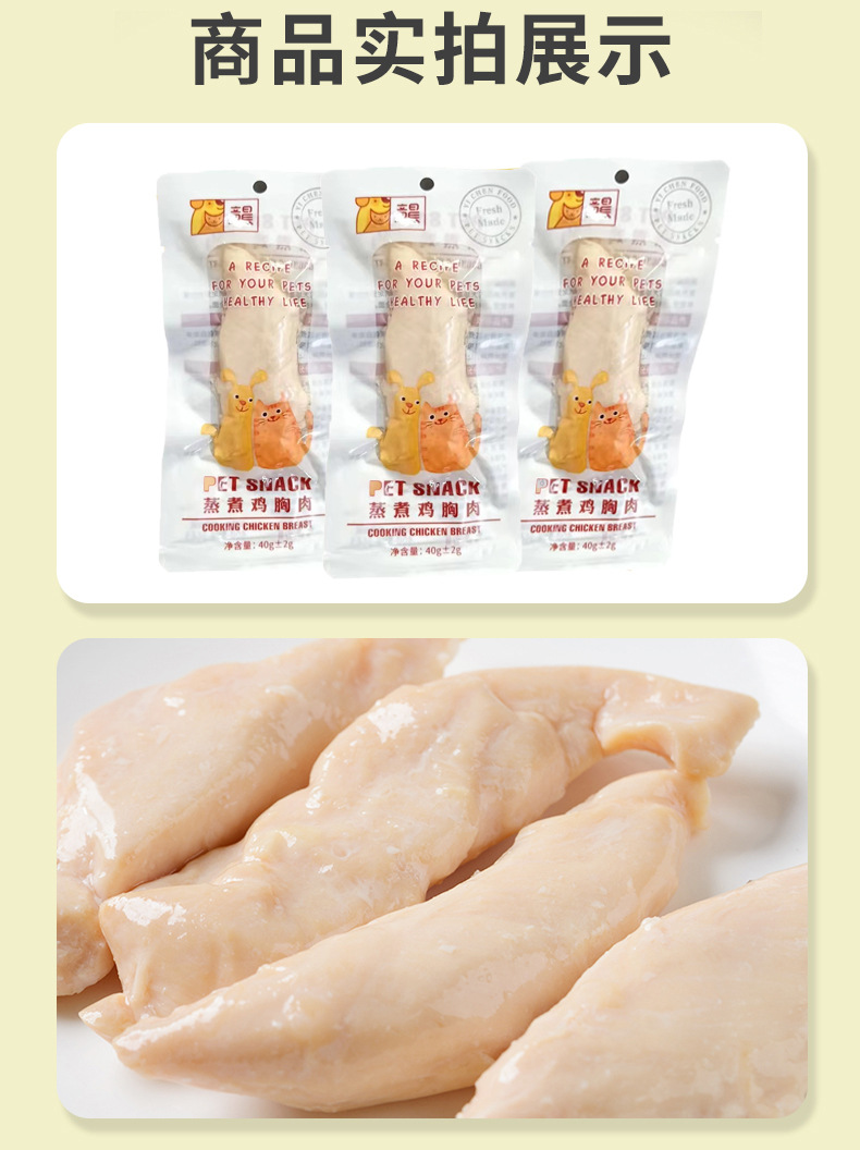 Куриная грудка на пару с фабрики оптом 40 г/пакет для кошек Специальные закуски для домашних животных кусочки отварного мяса для собак и кошек