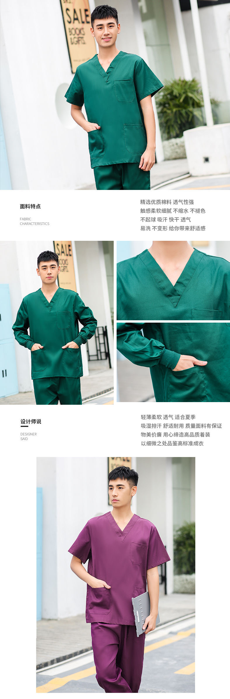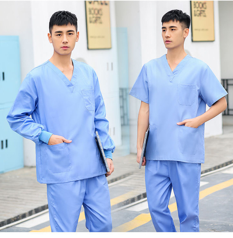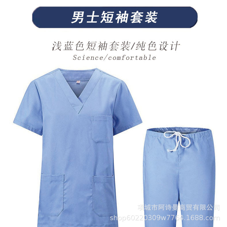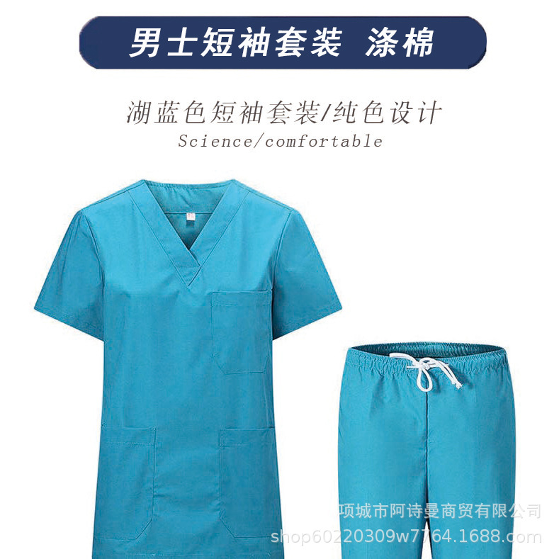 Костюмы из чистого хлопка с короткими рукавами для мужчин и женщин, отдельные комплекты, хирургические халаты с длинными рукавами, стоматологические изоляционные халаты для врачей.