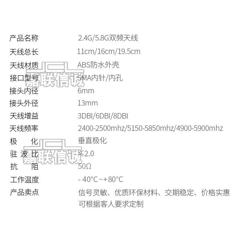 1)此款默认发11CM长度黑色内针款2.4G/5.8G双频小折叠天线,如需白色或内孔请下单时备注说明