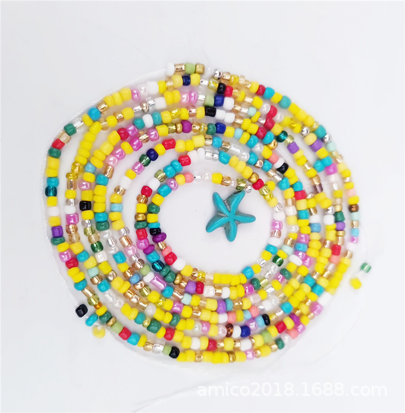2022 Европейская и американская пляжная цепочка хлопковая нить Талия бусины африканская цепочка для тела стеклянные бусины кружевная бикини Ювелирная цепочка