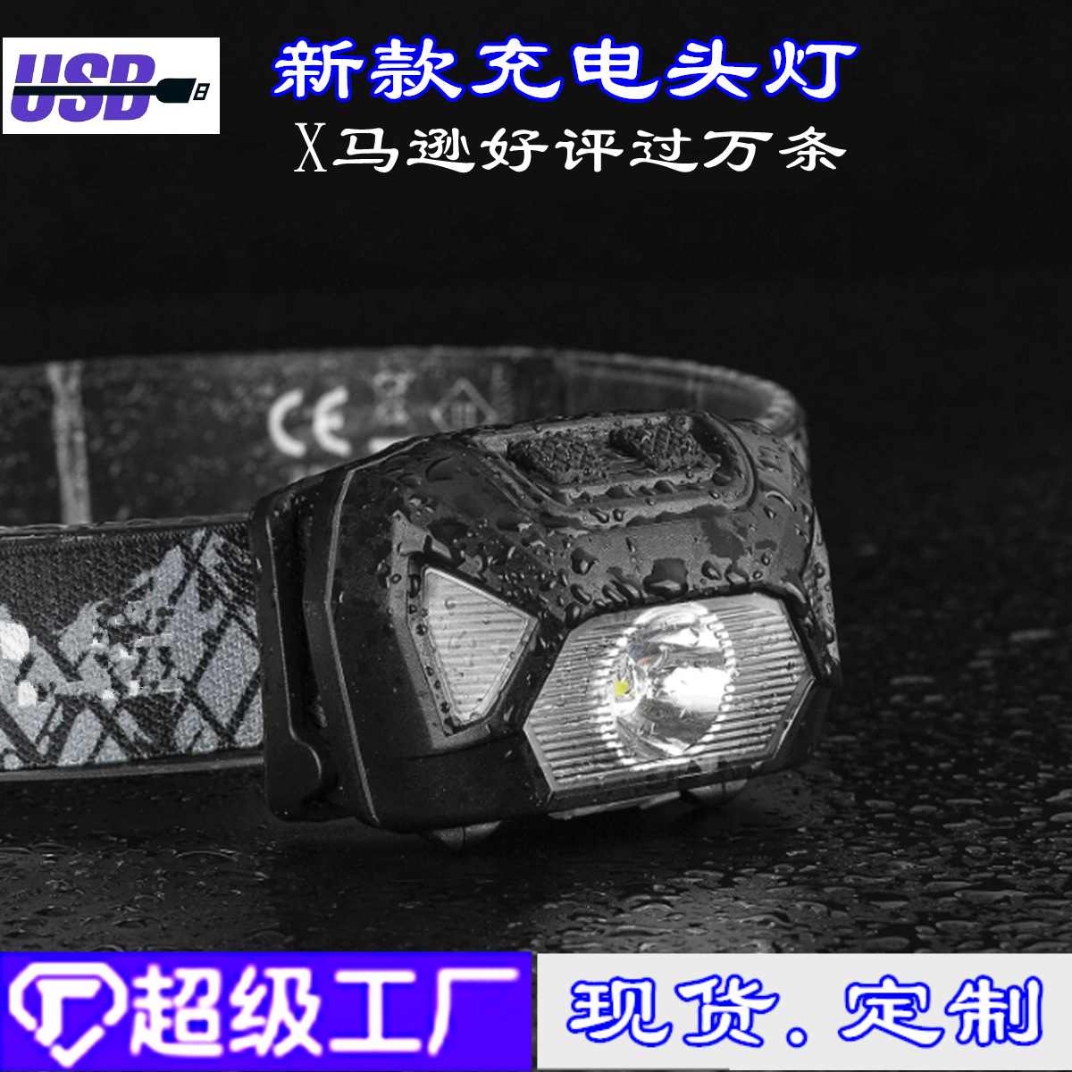 Поддержка пользовательских новых Amazon горячий продавать USB Зарядка 5 Вт сильный свет выделить водонепроницаемый головной портативный уличный фонарь