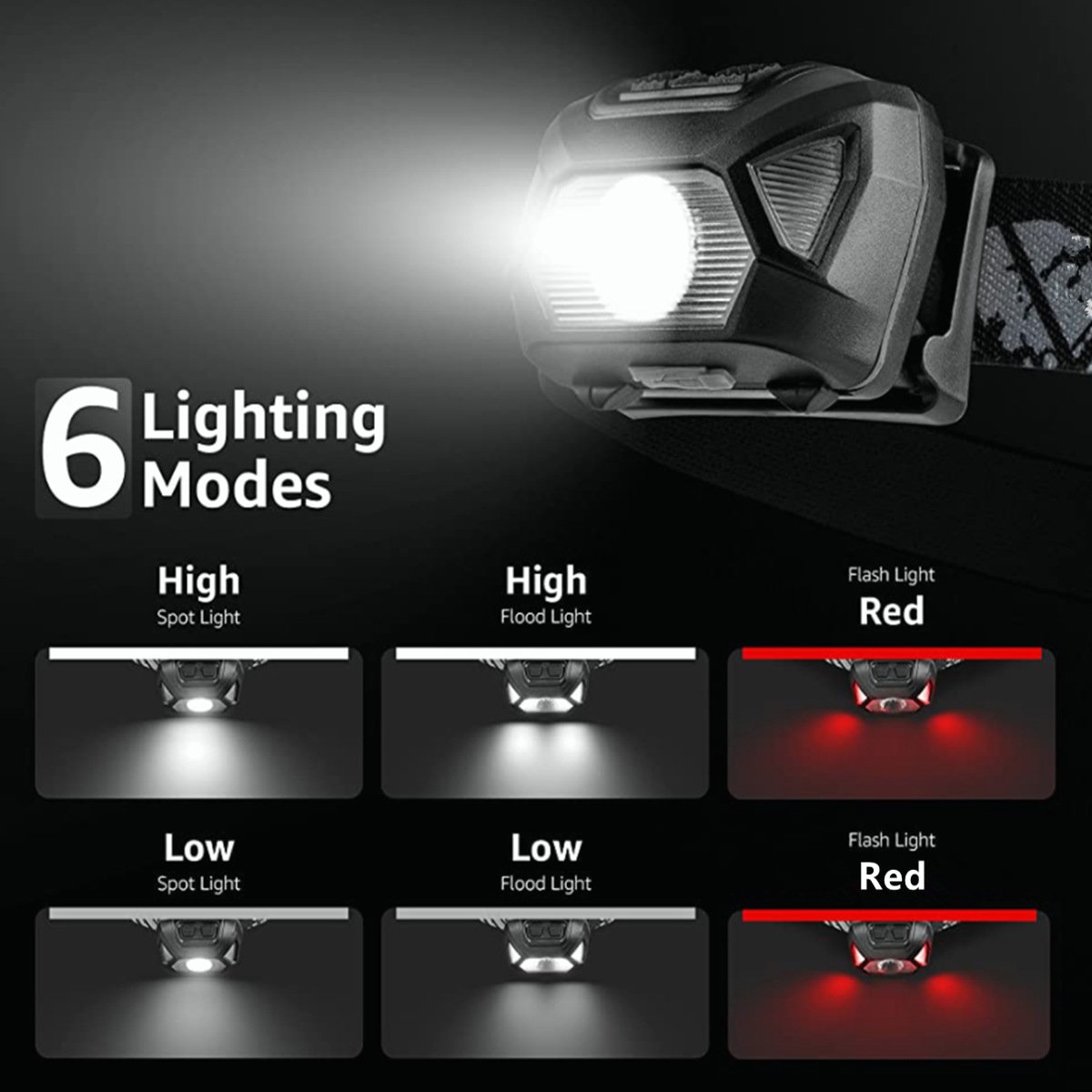 特点: 这是款轻便的防水户外运动头灯. 拥有舒适的手感,抗摔,耐低温等优点。防水等级IPX4更能适应专业户外的恶劣环境. 主灯主灯采用一颗高亮LED. 可照距离达到100-150米.4颗泛光LED灯能节能的连续工作几十小时,适合阅读,检修,露营等。 辅灯红光LED和绿光交替闪烁,户外遇到紧急情况可发出强列的求救信号或警示作用. 独特的双开关设计便于白光. 红光. 强光. 弱光. 爆闪等不同的照明模式切换自如. 高容量的聚合物充电电池为您提供超长的续航时间及更安全的户外活动.