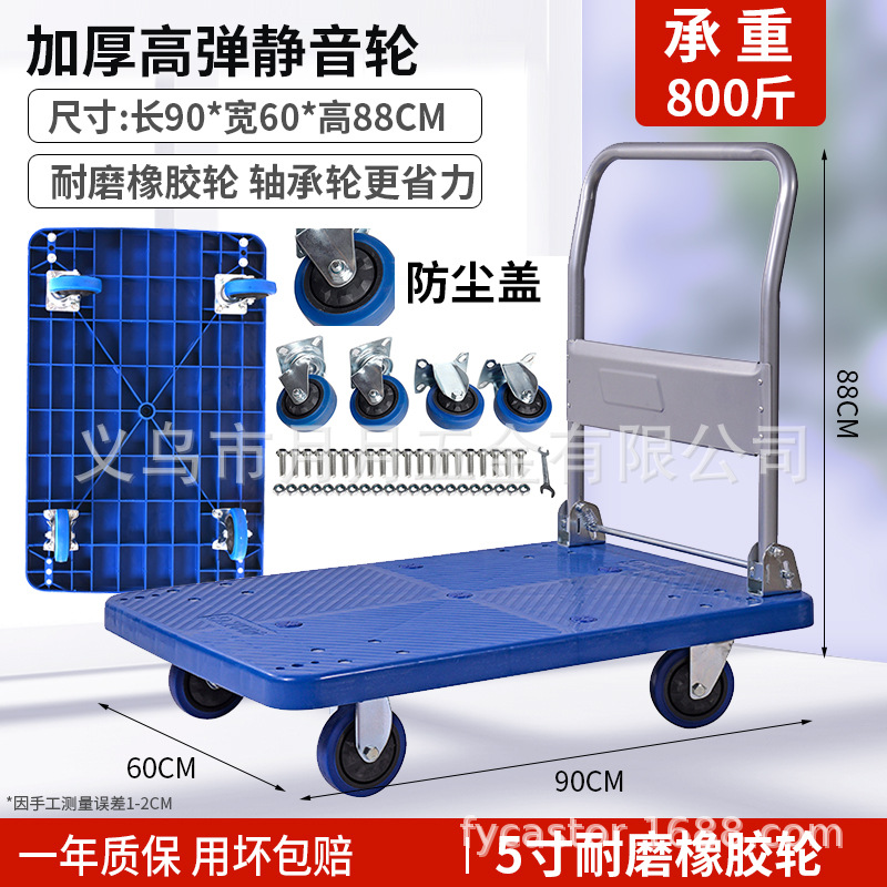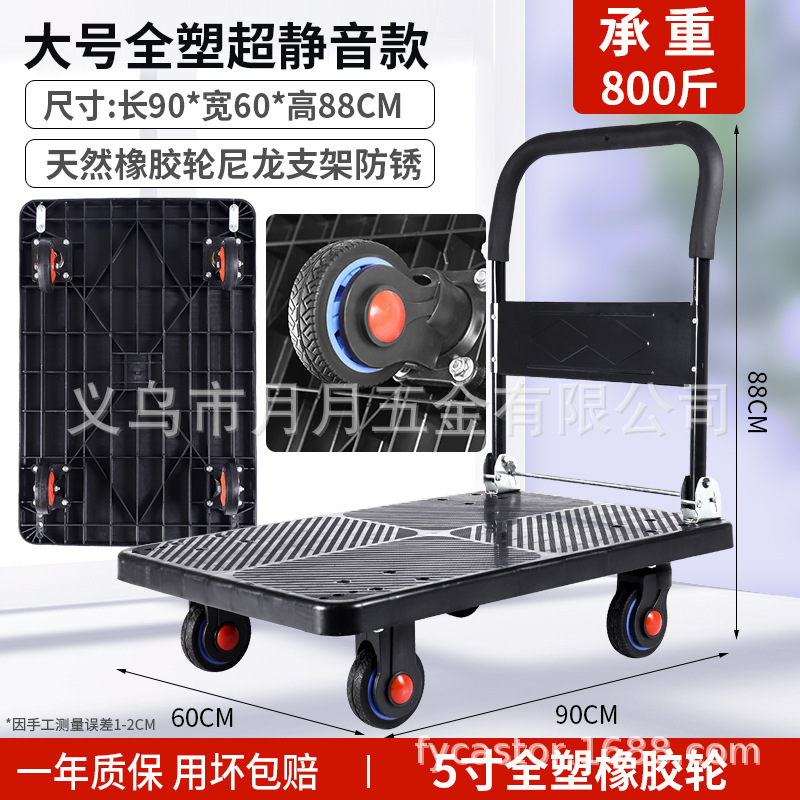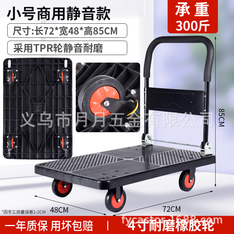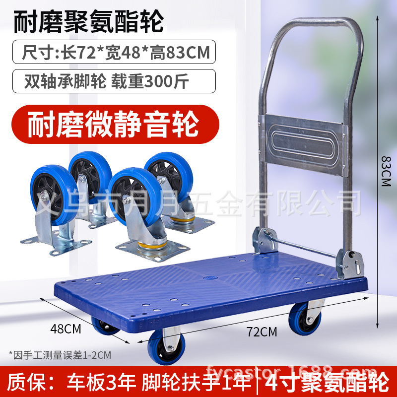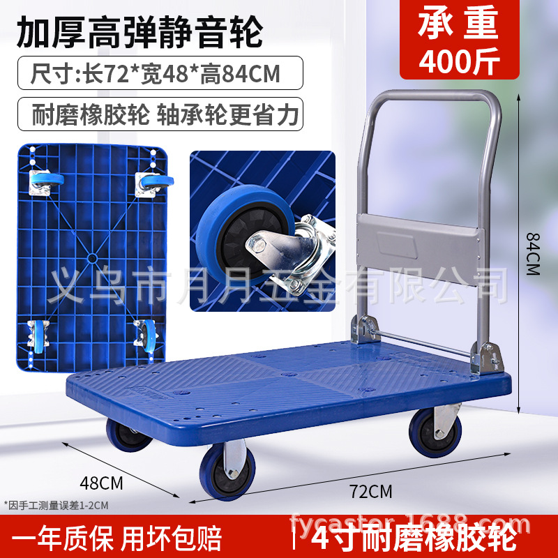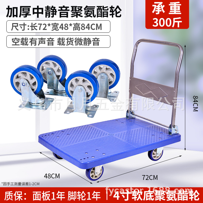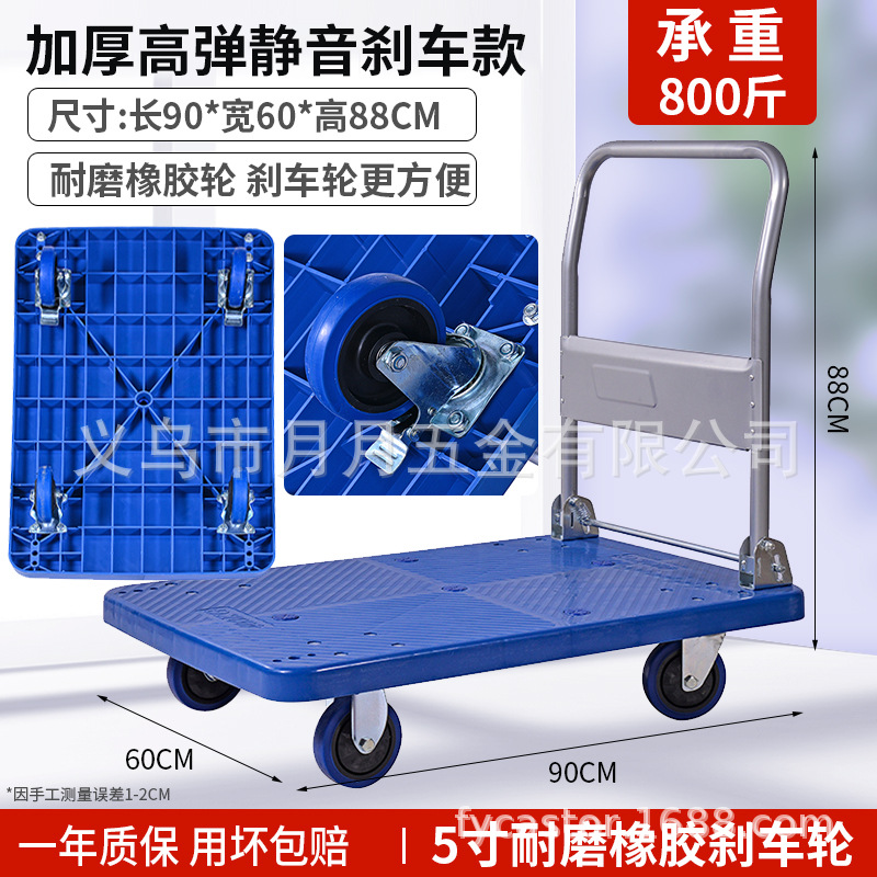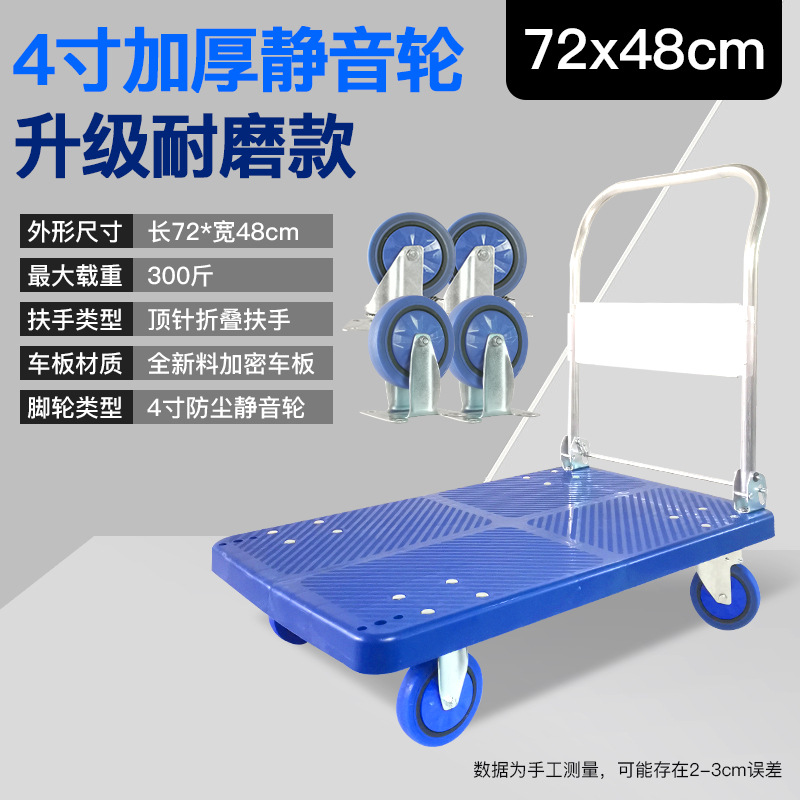 Пластиковая тележка, платформенная тележка, ручная тележка, складная тележка для переезда, бесшумная складская тележка для грузов, может использоваться для доставки.