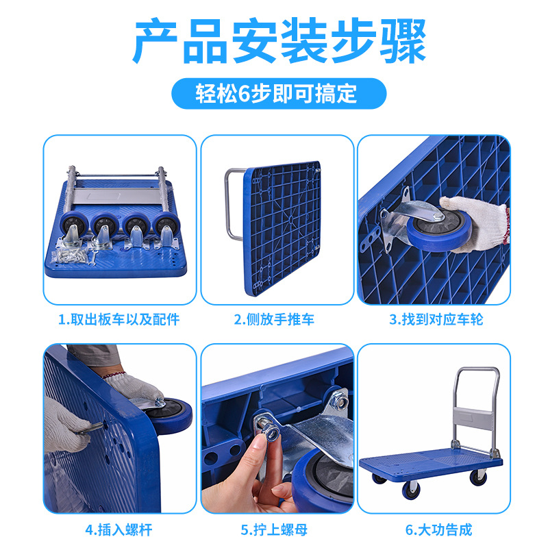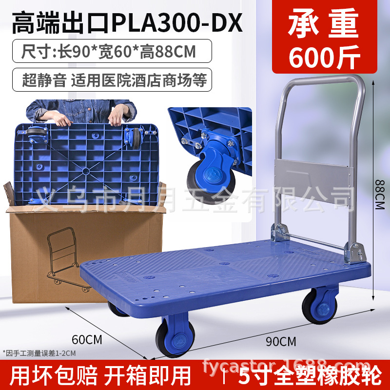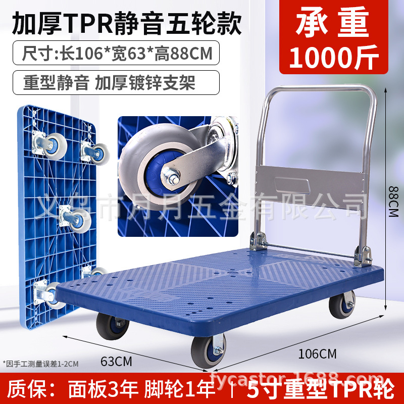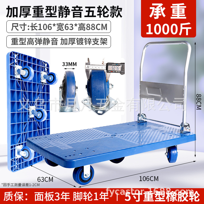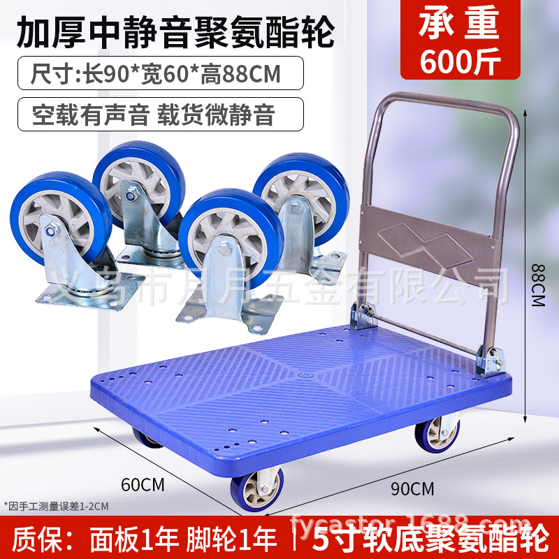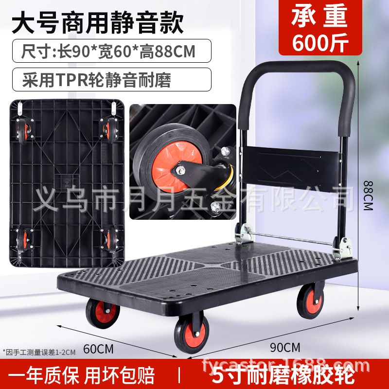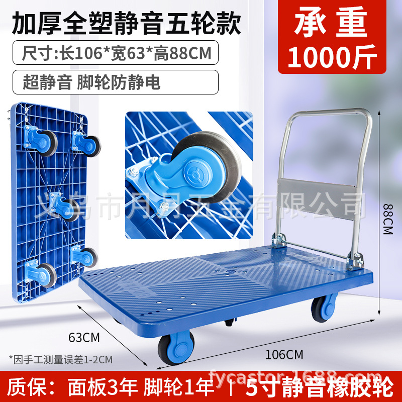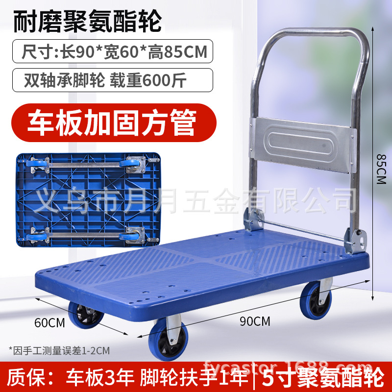 Пластиковая тележка, платформенная тележка, ручная тележка, складная тележка для переезда, бесшумная складская тележка для грузов, может использоваться для доставки.