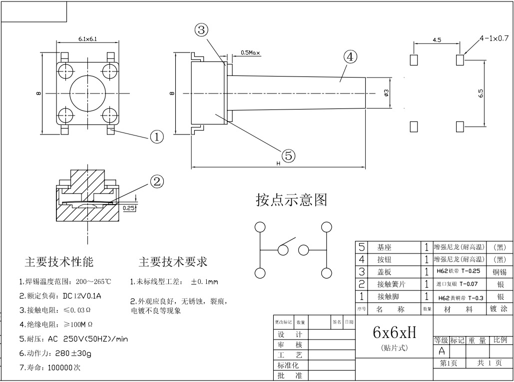 Сенсорный переключатель 6*6*5 патч 6X6SMD четырехногий кнопочный переключатель вертикальный патч 4.3/4.5/5/5/6H