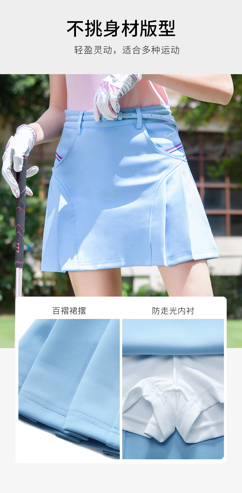 Поставка женских юбок для гольфа весна-лето с встроенными шортами для защиты от обнажения, спортивных юбок для бадминтона с высокой талией.