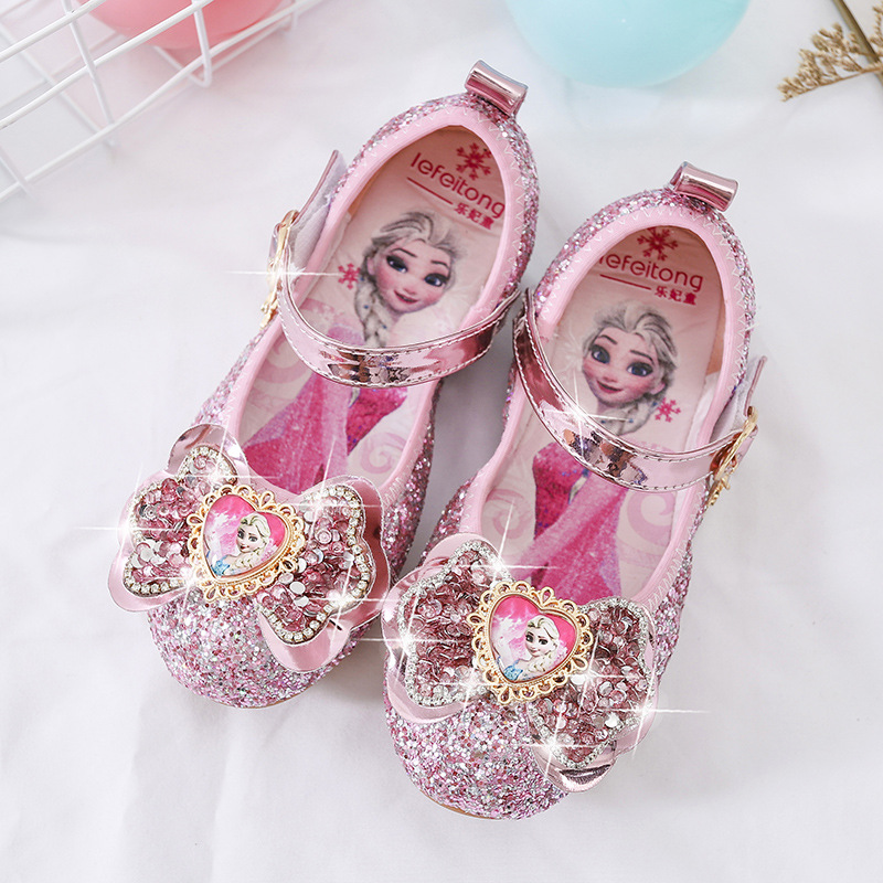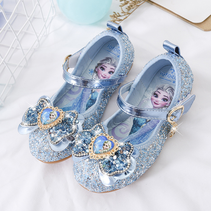 Обувь принцессы для девочек Кожаная обувь Эльзы, весна-осень, новая детская обувь на плоской подошве с кристаллами и бантом, обувь на мягкой подошве, одиночная обувь