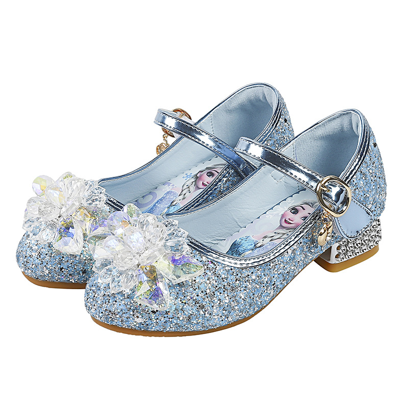 Детские кожаные туфли для девочек в стиле принцессы, новинка весны и осени, детские туфли с кристаллами, модные туфли Эльзы на высоком каблуке, туфли для маленьких девочек.