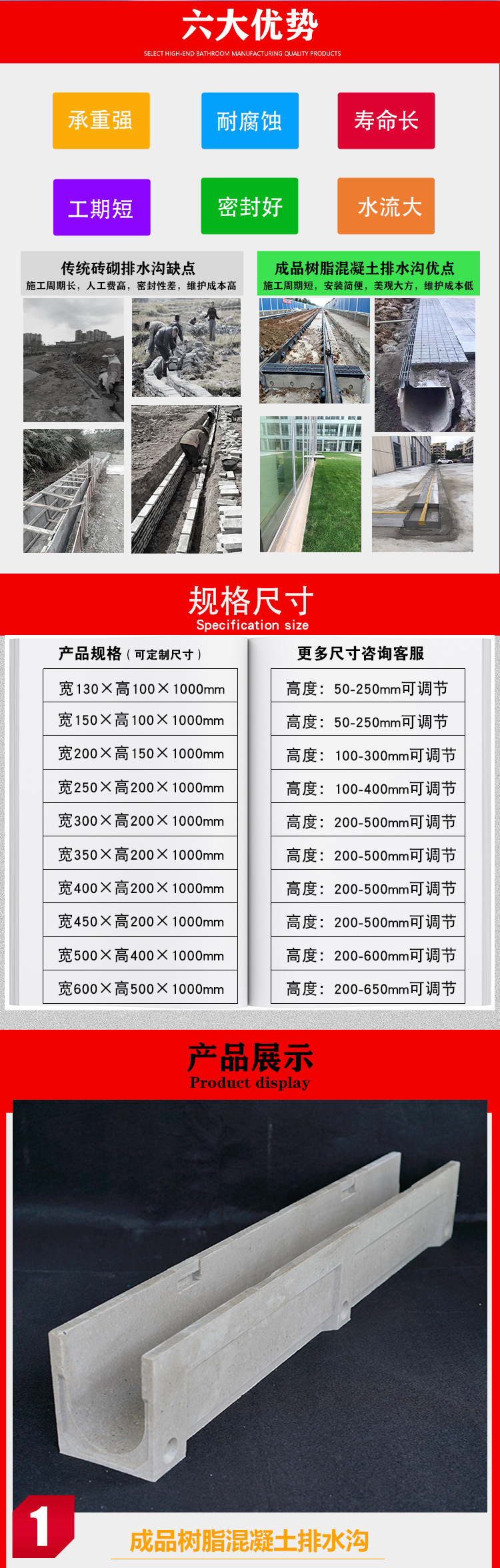 Готовая интегрированная полимерная бетонная дренажная Канава U-образная канализационная траншея производитель SMC крышка линейной дренажной канавы