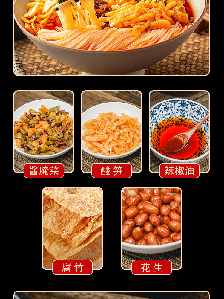 Булочки из сушеного рисовой муки, булочки с улиточным супом, булочки с арахисом, булочки с юба, булочки с кислыми бамбуковыми побегами, булочки с маринованными овощами, булочки с уксусом, булочки с маслом чили.