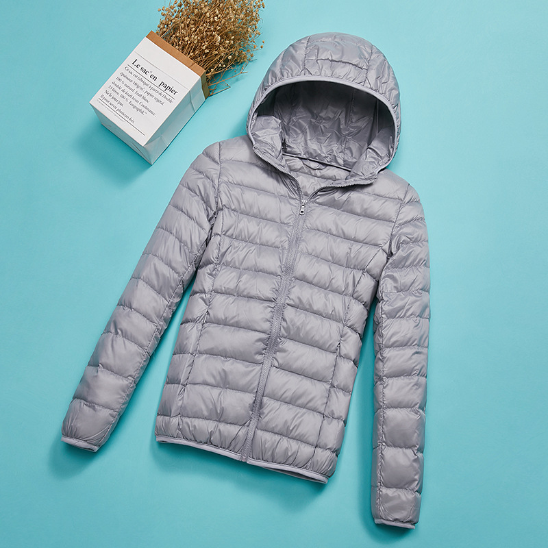 Легкий пуховик женский 2023, новая мода, приталенный с капюшоном и вертикальным воротником, белое короткое легкое пальто на утином пуху, трансграничное