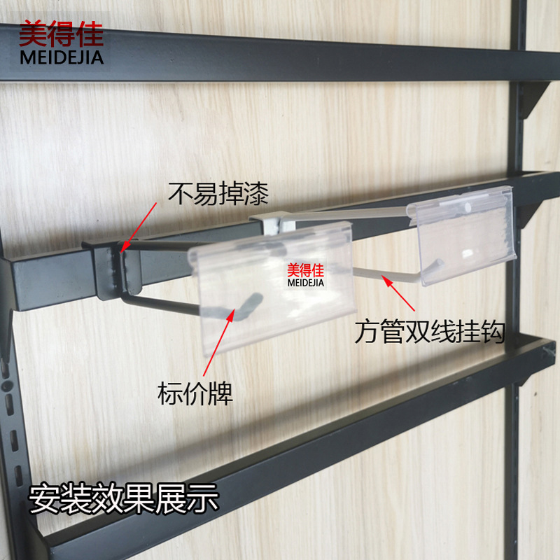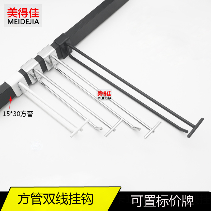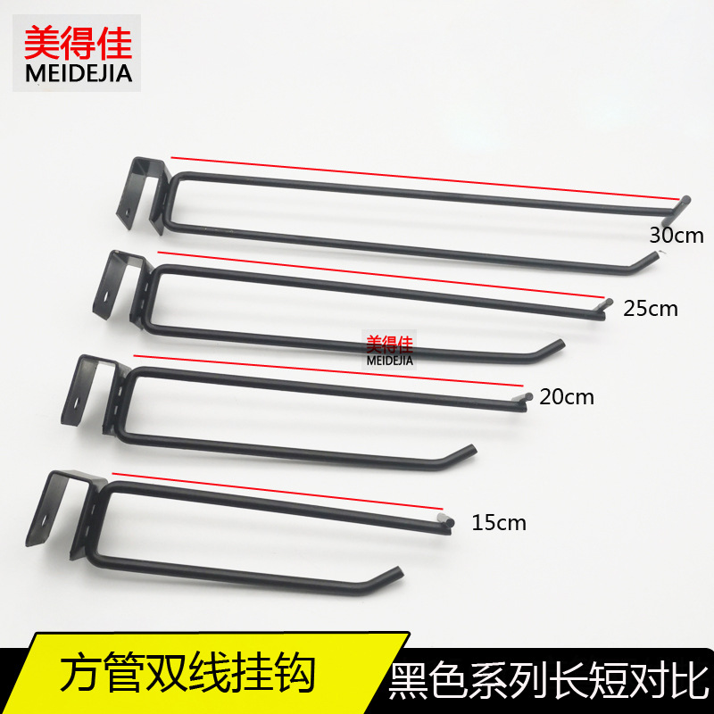 Квадратная трубка двухстрочный крючок черная белая серебряная карта 15 мм луч полки супермаркета U-образный крюк ценника