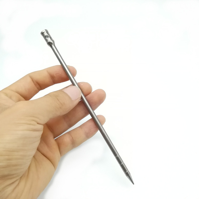 钛合金轻度高重量轻 5mm直径帐篷钉可增加钉本身的强度,即使是岩石也可以钉入,同样也适合冻土使用。可作为引钉器使用。顶部打击面设计,方便砸钉。中间的孔,穿上绳子,方便取地钉。