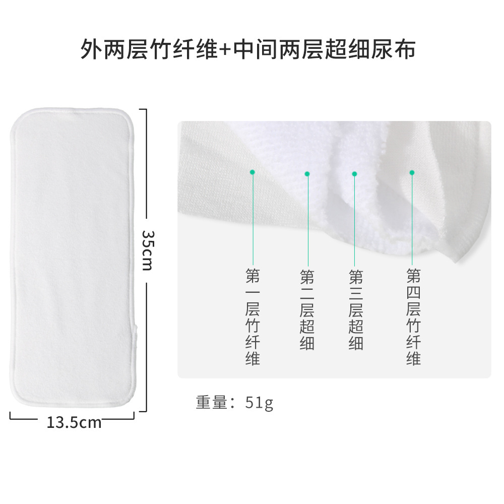 Подгузники для детей, многоразовые тканевые подгузники с подходящими вкладышами, вкладыши из бамбукового волокна для поглощения мочи.