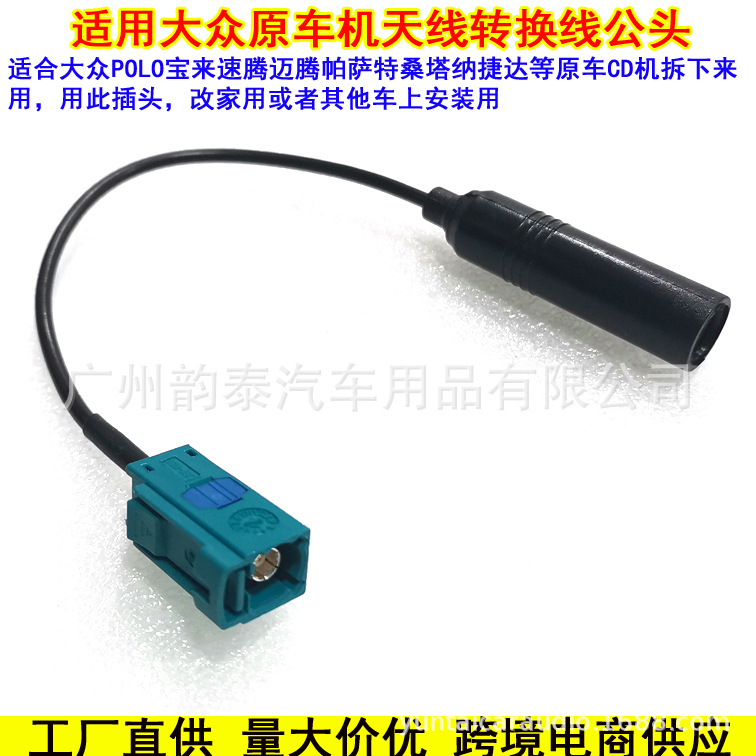 适用大众新宝来捷达桑塔纳帕萨特速腾斯柯达宝马克莱斯勒吉普雷诺等原车音响FM收音天线转接线