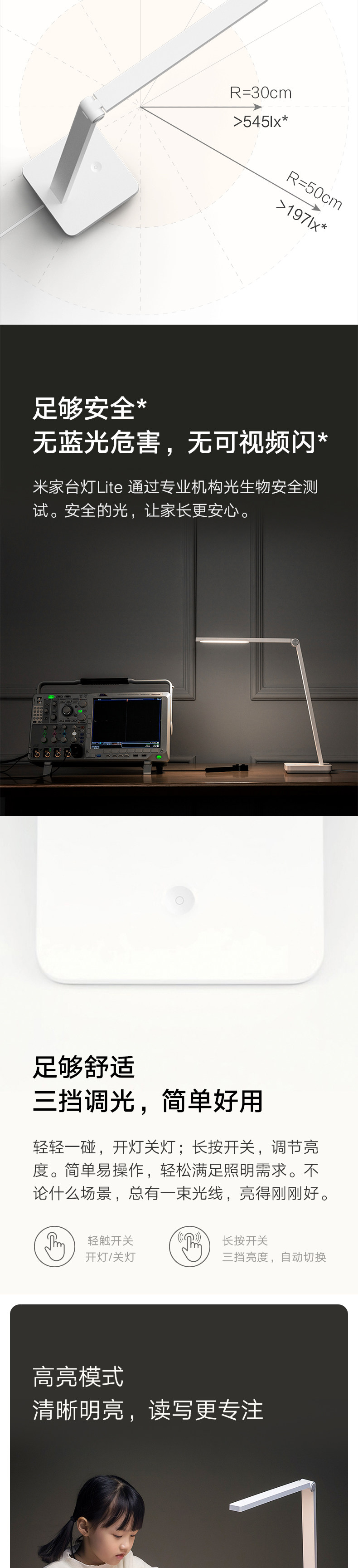 Настольная лампа Xiaomi Lite для студентов, для учебы и чтения, прикроватная лампа для спальни и общежития, защита глаз, интеллектуальное регулирование яркости, элегантный дизайн.