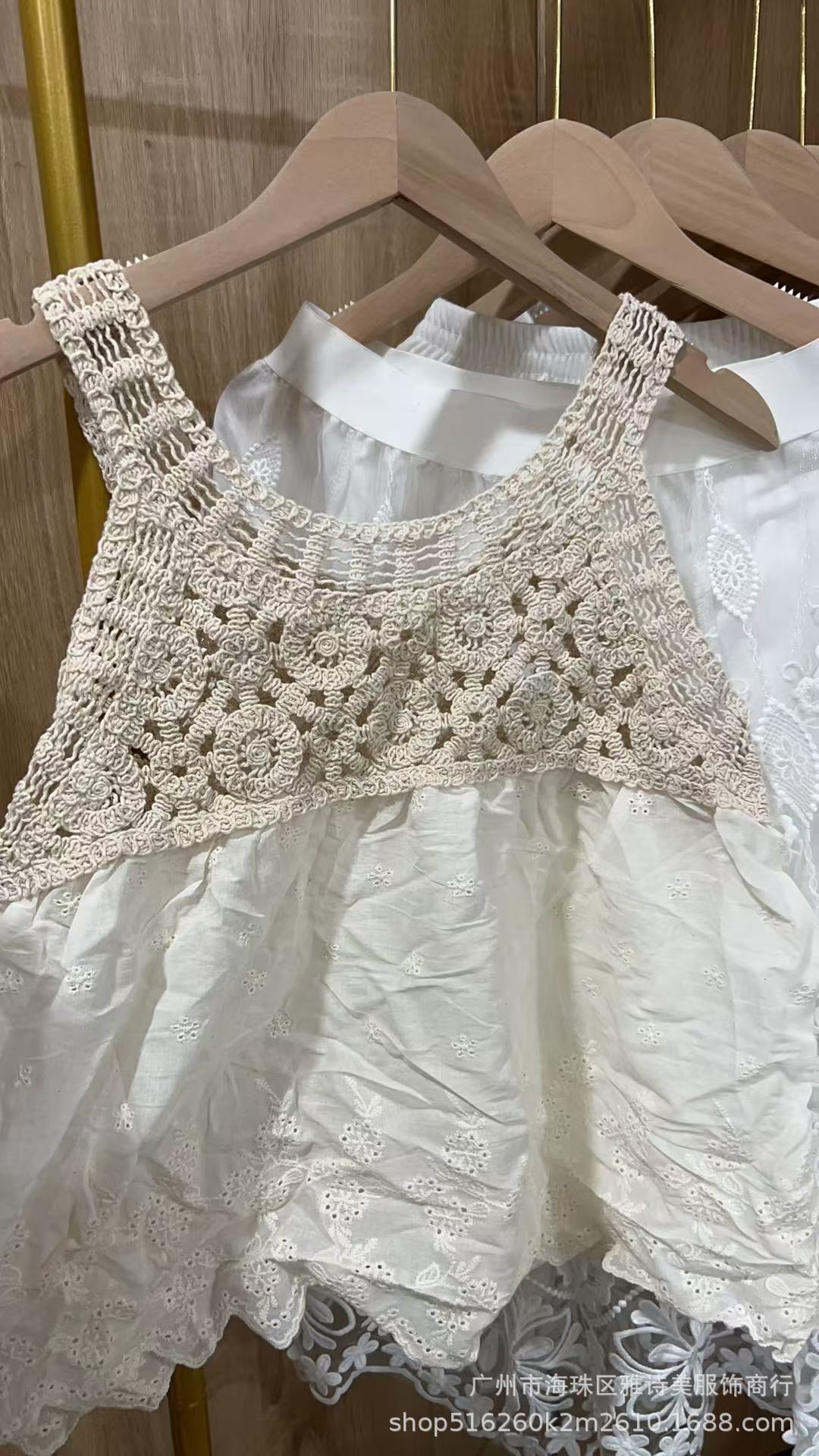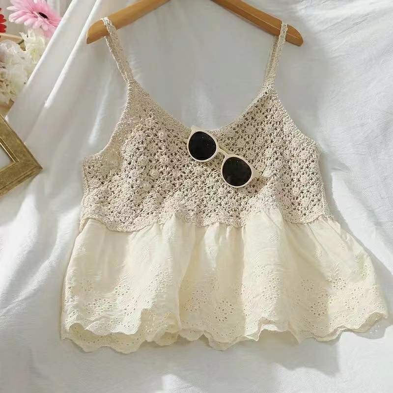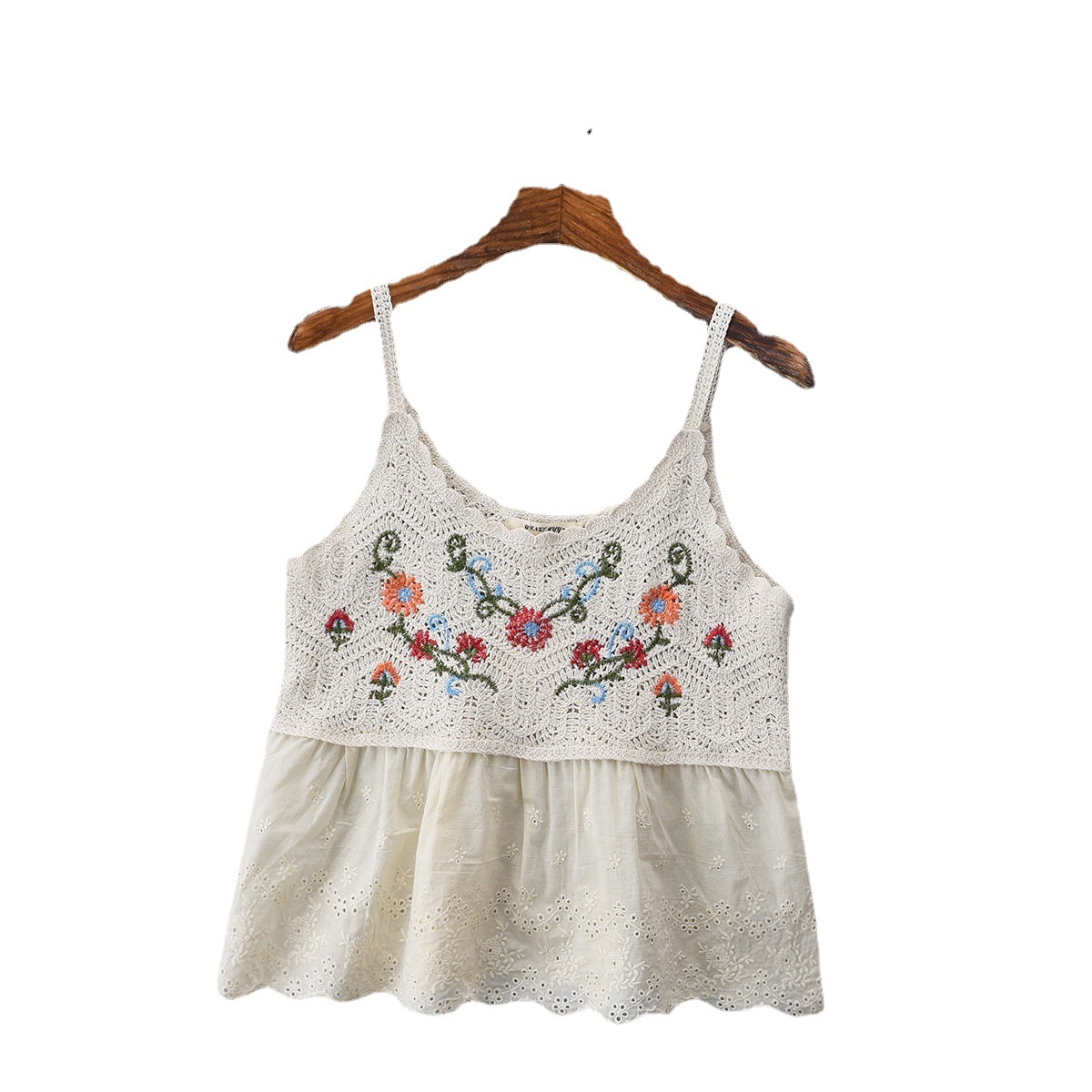 Новая женская майка в стиле ретро с вышивкой и ажурными вставками, свободный крой, нишевый базовый топ, можно носить как верхнюю одежду.