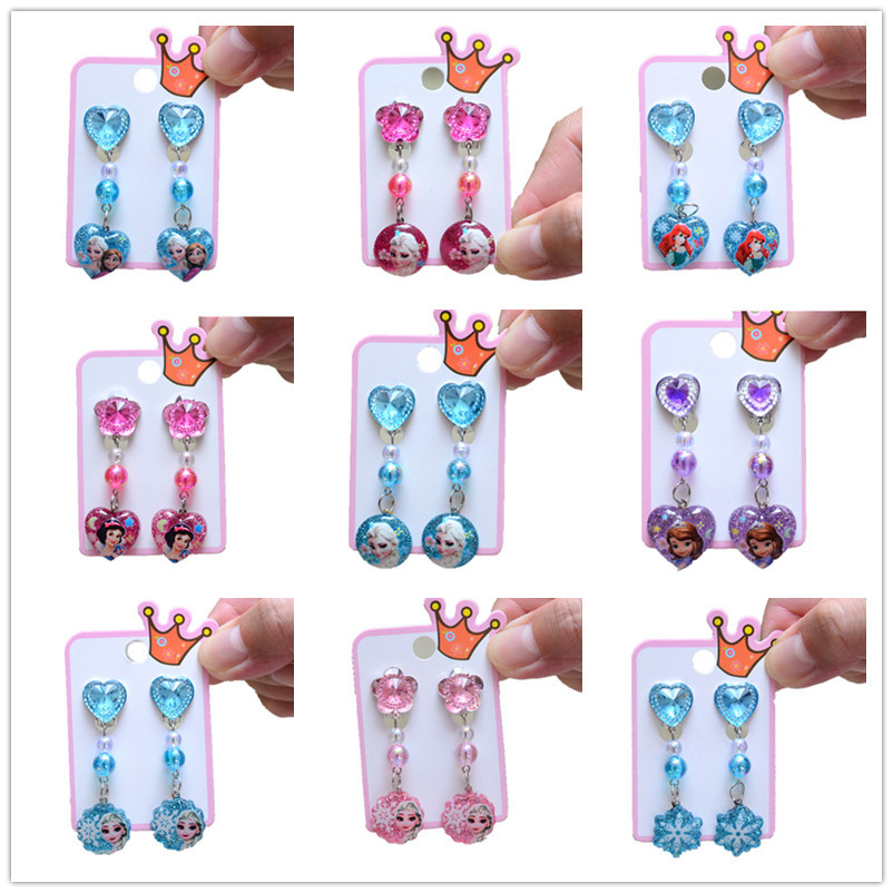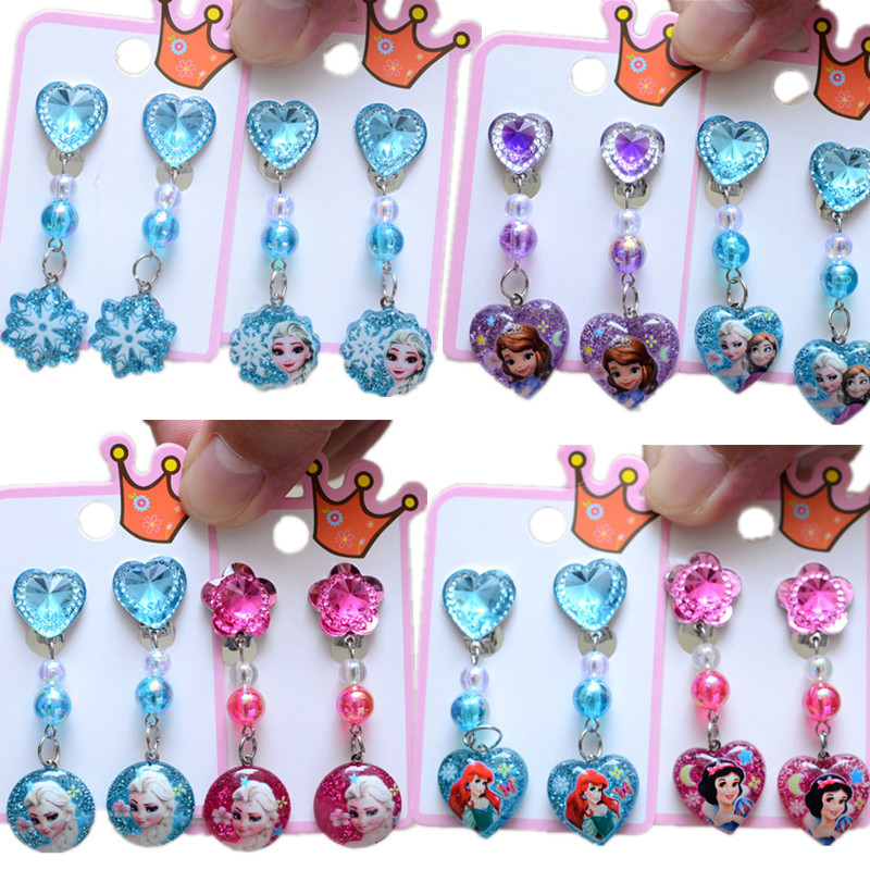 Прямая поставка с фабрики детский зажим для ушей без отверстия для ушей кулон любовь Подарочная коробка костюм акриловая вспышка бриллиантовые Мультяшные серьги пара