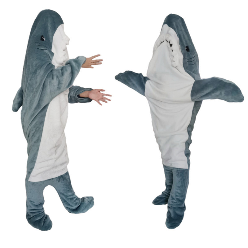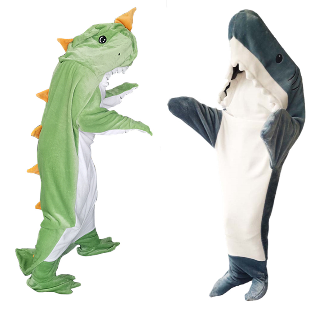 Пижама-комбинезон для сна и отдыха, цельный, с защитой от раздражения, в виде динозавра или акулы, из фланели, утолщенный, теплый, плюшевый, с эффектом одеяла