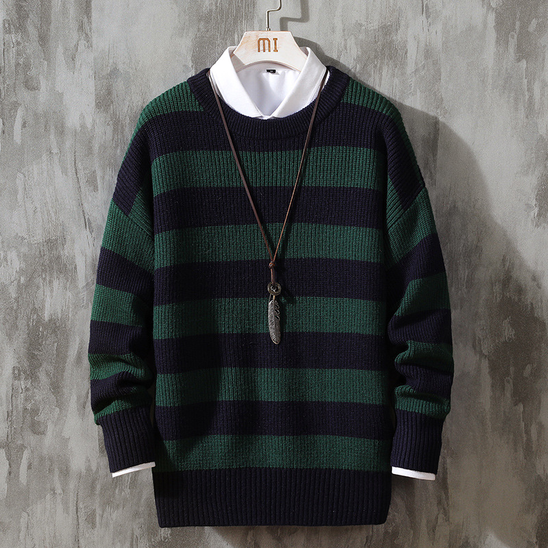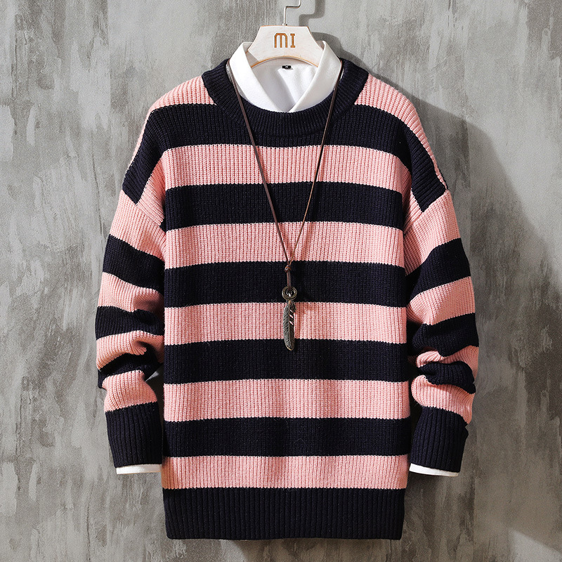 Производители OBCY1 поставляют 2021 новый мужской пуловер с круглым вырезом в полоску, свитер в полоску, осенне-зимний Простой Модный