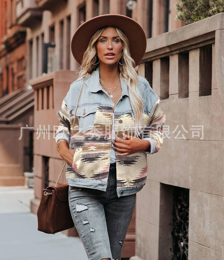 Европейская и американская свободная джинсовая шерстяная куртка с длинными рукавами и лацканами Amazon AZTEC, ретро-куртка, верхняя женская одежда