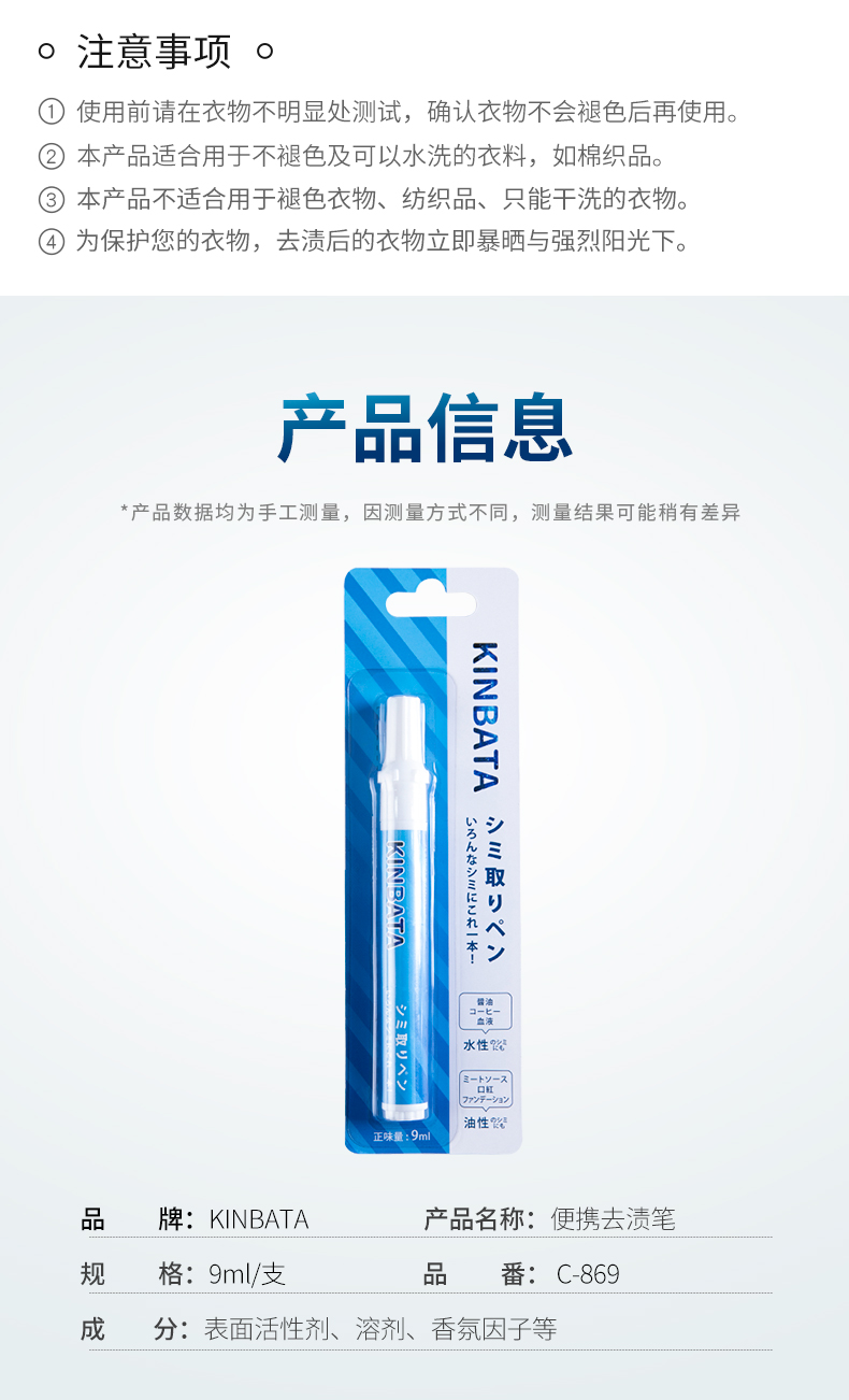 Японская кинбата ручка для удаления пятен портативная без стирки сильное масло для удаления пятен губная помада стойкое пятно средство для чистки одежды