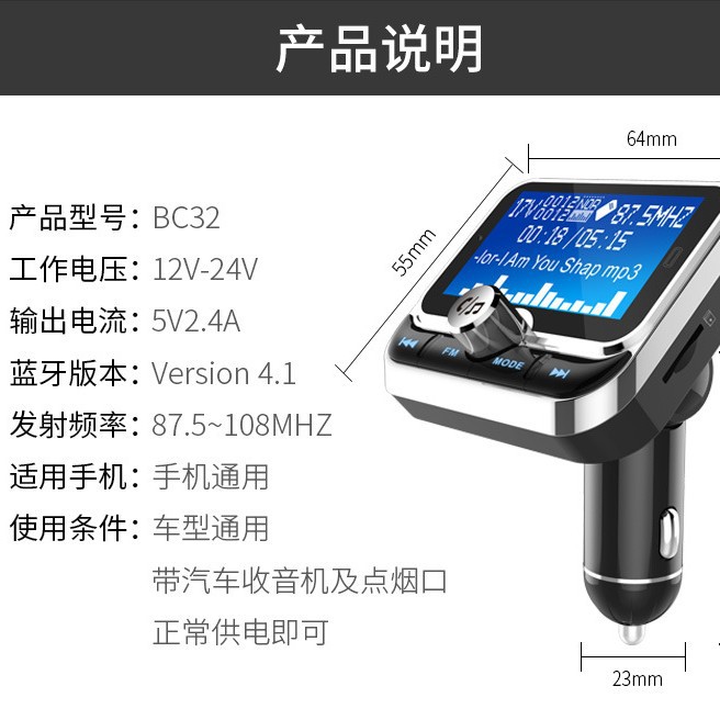 Новая Автомобильная mp3-карта BC32, Подключаемая к большому экрану, Папка поддержки языков в 7 странах с автомобильным Bluetooth-плеером с дистанционным управлением