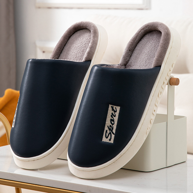 Зимние очень большие хлопковые тапочки, мужские тапочки из искусственной кожи, непромокаемые на толстой подошве, домашняя Нескользящая теплая обувь в помещении 47 48 49