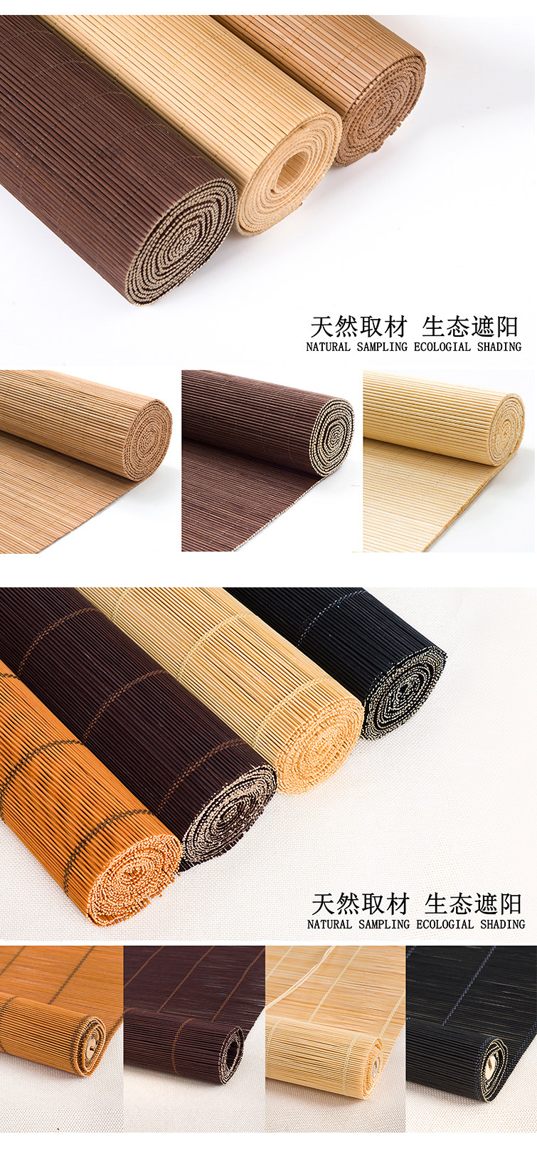 Грубая проволока карбонизированная окраска (50% светоэкранирования); Грубая шелковая бамбуковая природа (50% затенения); Толстый шелковый цвет грецкого ореха (50% затенения); A-тонкая-бамбуковая природа цвета (затенение 40%); A-тонкий-карбонизированный цвет (затемненность 40%); A-тонкая-цвет грецкого ореха (затемненность 40%); B-тонкая ширина-карбонизированный цвет (30% затенения); B-тонкая ширина-цвет бамбука 30%); B-тонкая ширина-цвет карри 30%); Десять миль персика затенения 40%); (Основы широкий бамбуковый затенение 75%); Полуфабрикаты