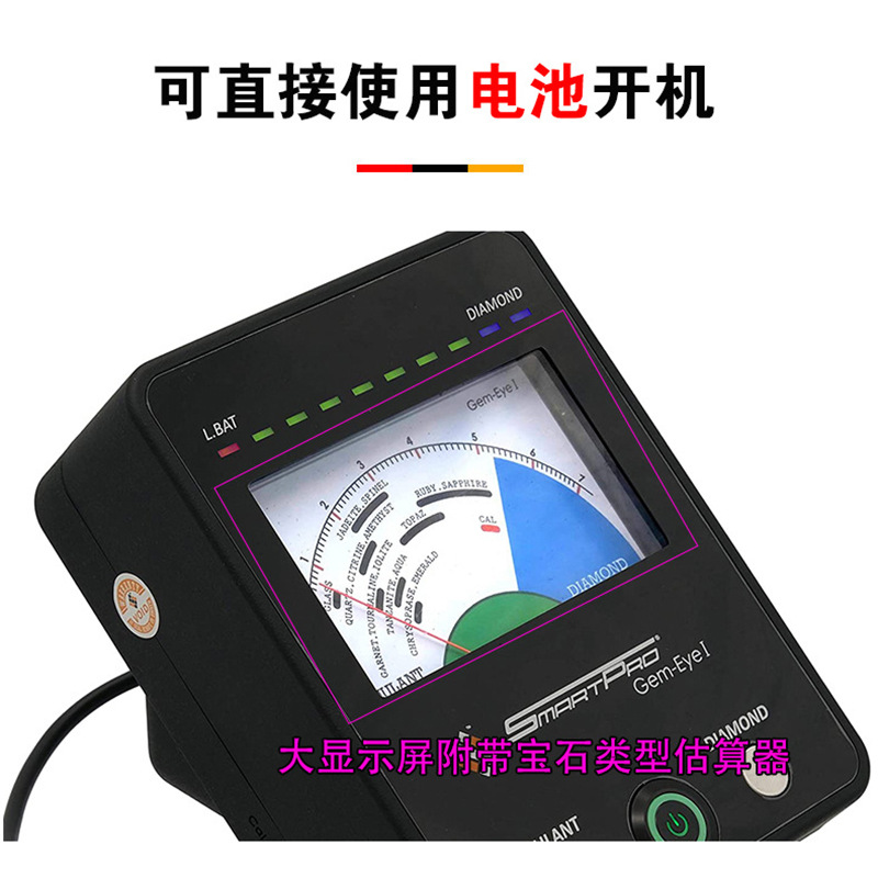 设计精美的宝石测试仪,带颜色估算器显示,可顺畅无缝地测试您的珍贵宝石和钻石。