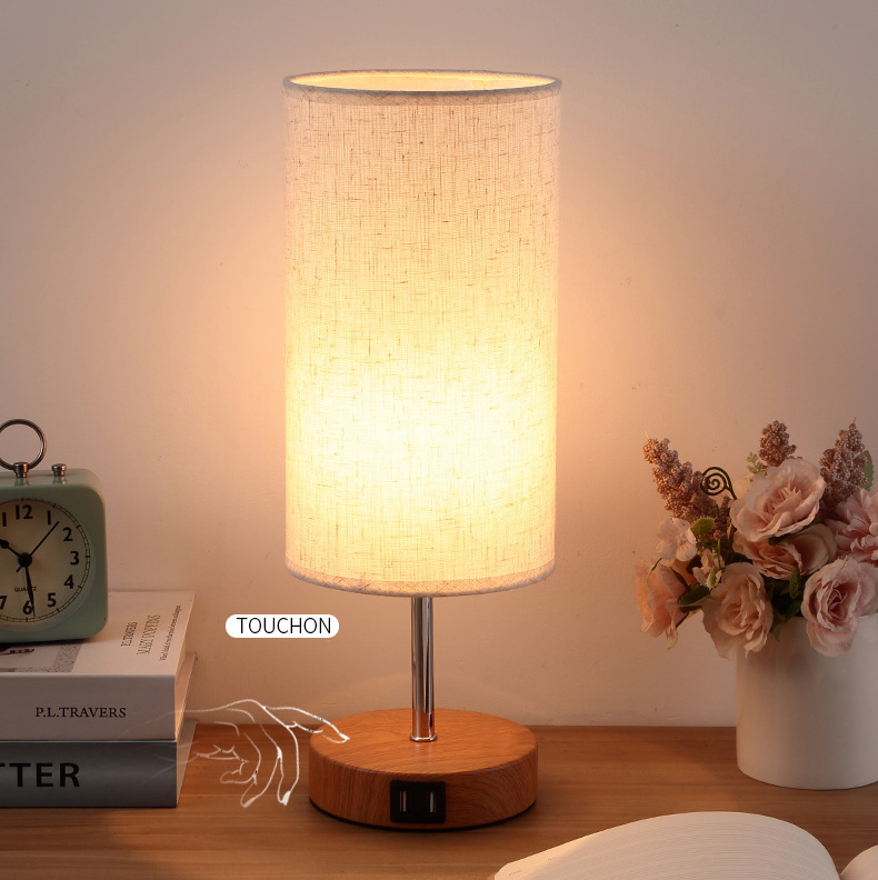 Трансграничная сенсорная настольная лампа USB зарядная настольная лампа светодиодная трехступентная затемнитель для спальни прикроватная лампа тканевая декоративная лампа бескрайняя