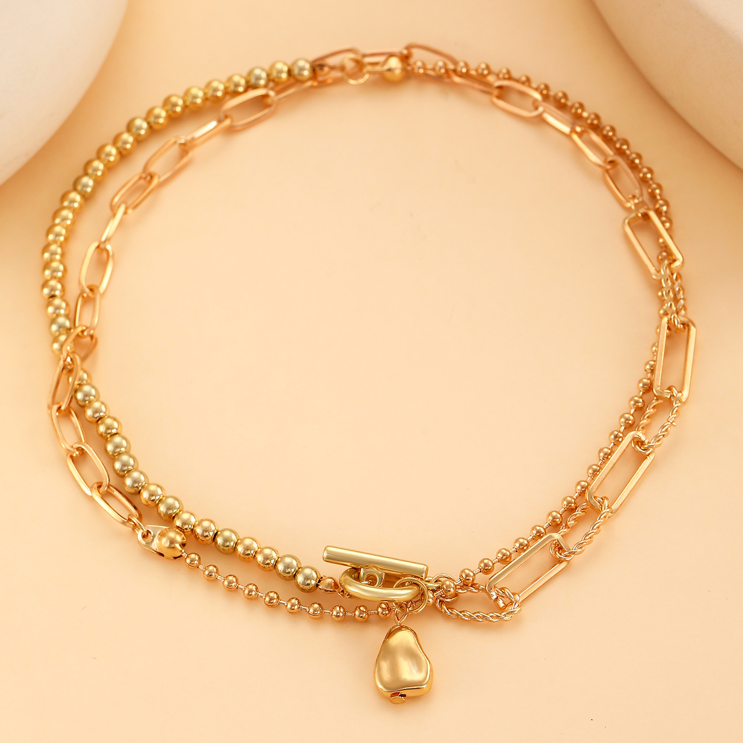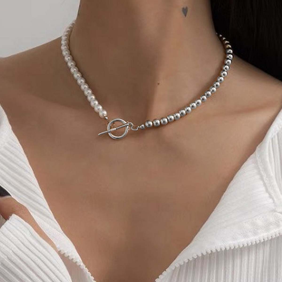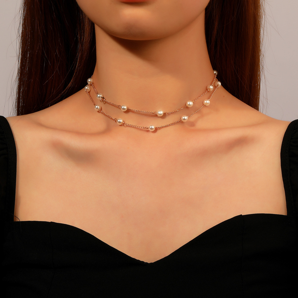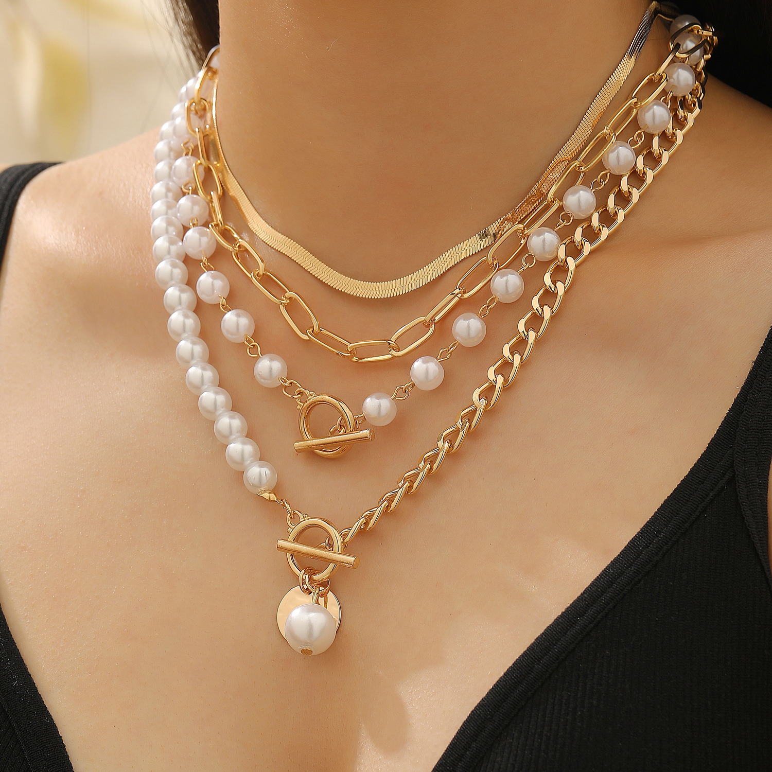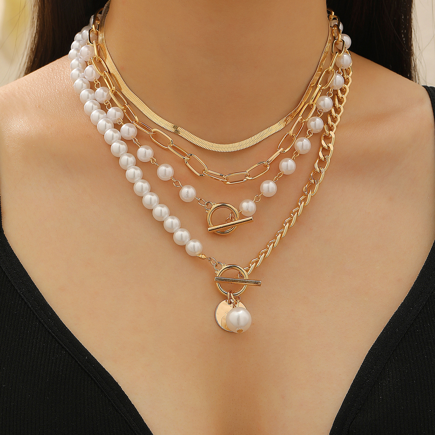 Европейские и американские трансграничные украшения, модное длинное многослойное ожерелье с круглыми бусинами, ожерелье в ретро-стиле с персонализированным жемчугом и застежкой OT.