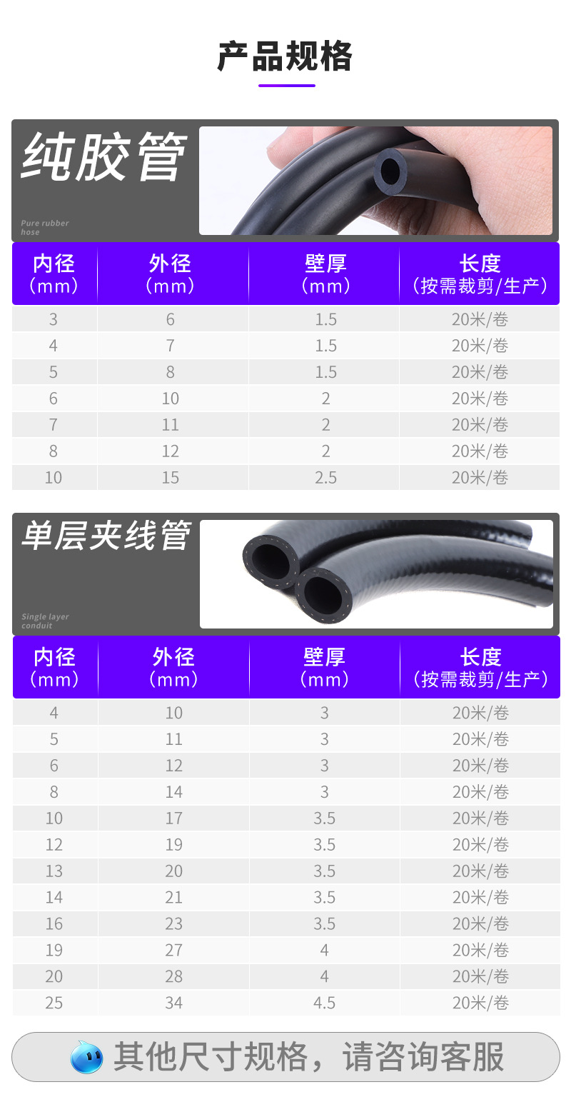Резиновая трубка из ЭПДМ-каучука (этилен-пропилен-диеновый каучук) с армированием проволокой, шланг низкого давления, шланг автомобильного отопителя, водопроводная трубка двигателя, трубка охлаждающей жидкости