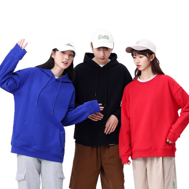 Свитер из чистого хлопка Индивидуальный логотип Круглый вырез на флисовой подкладке Рабочая одежда Пуловер Классная одежда Махровая рекламная рубашка с капюшоном с вышитым принтом