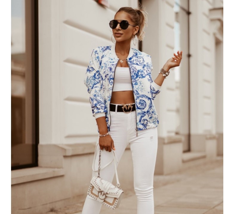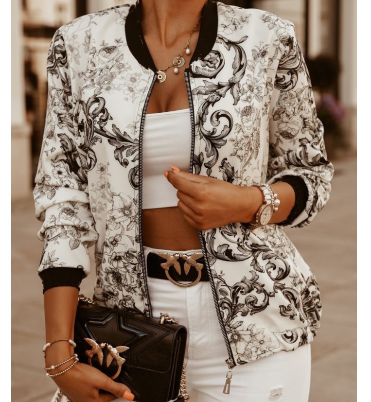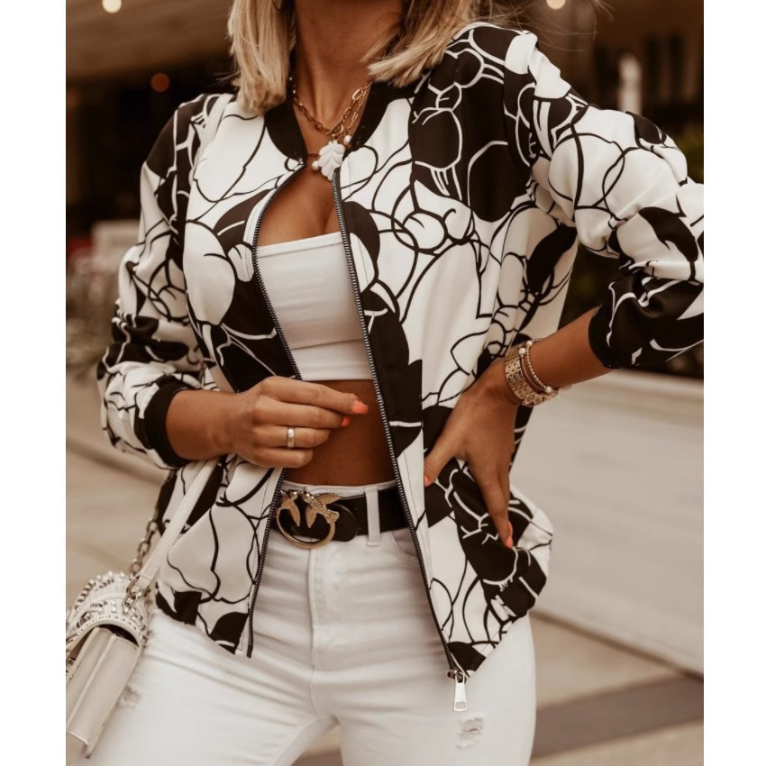 Amazon AliExpress желает популярную осенне-зимнюю тонкую короткую куртку с длинными рукавами и принтом, маленькую верхнюю одежду для женщин