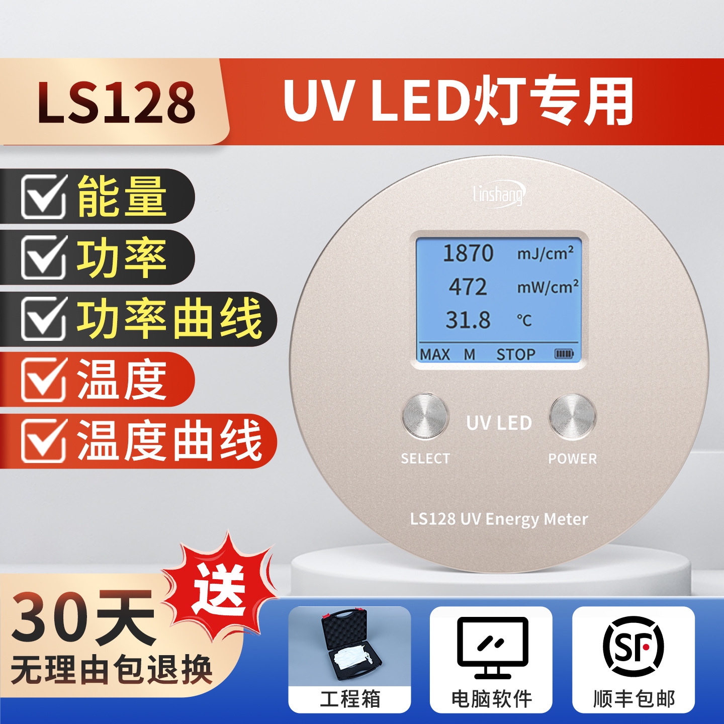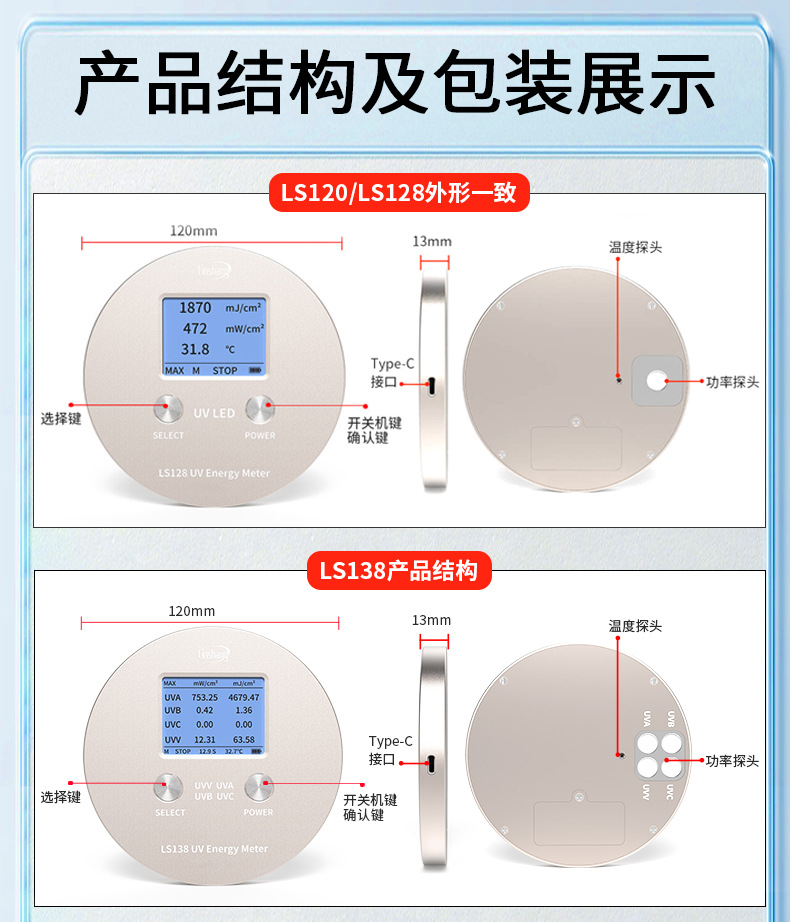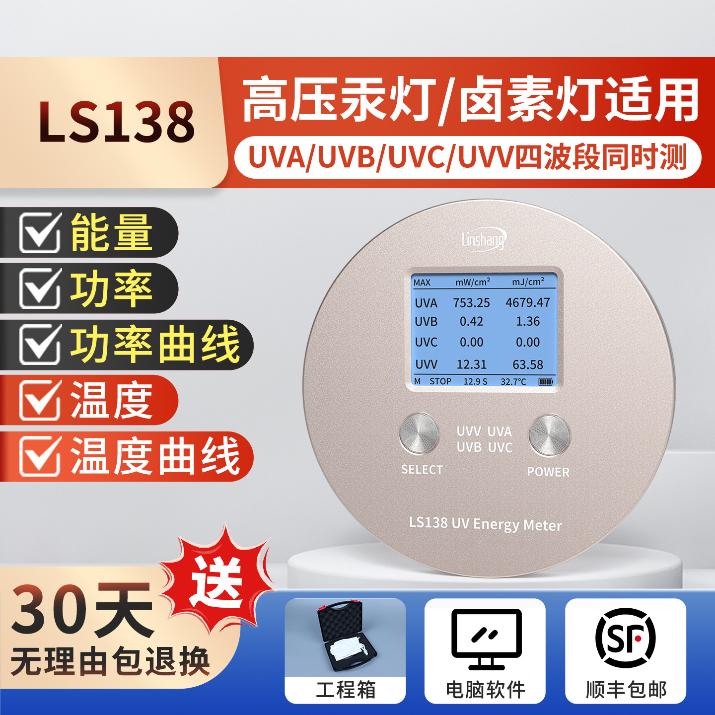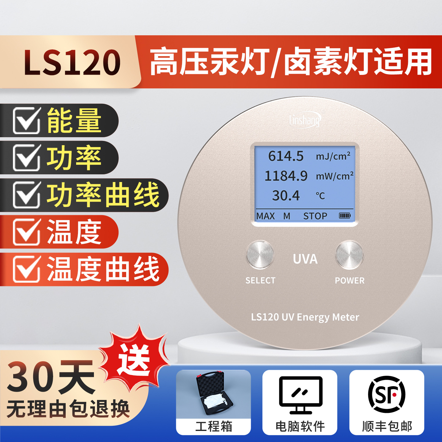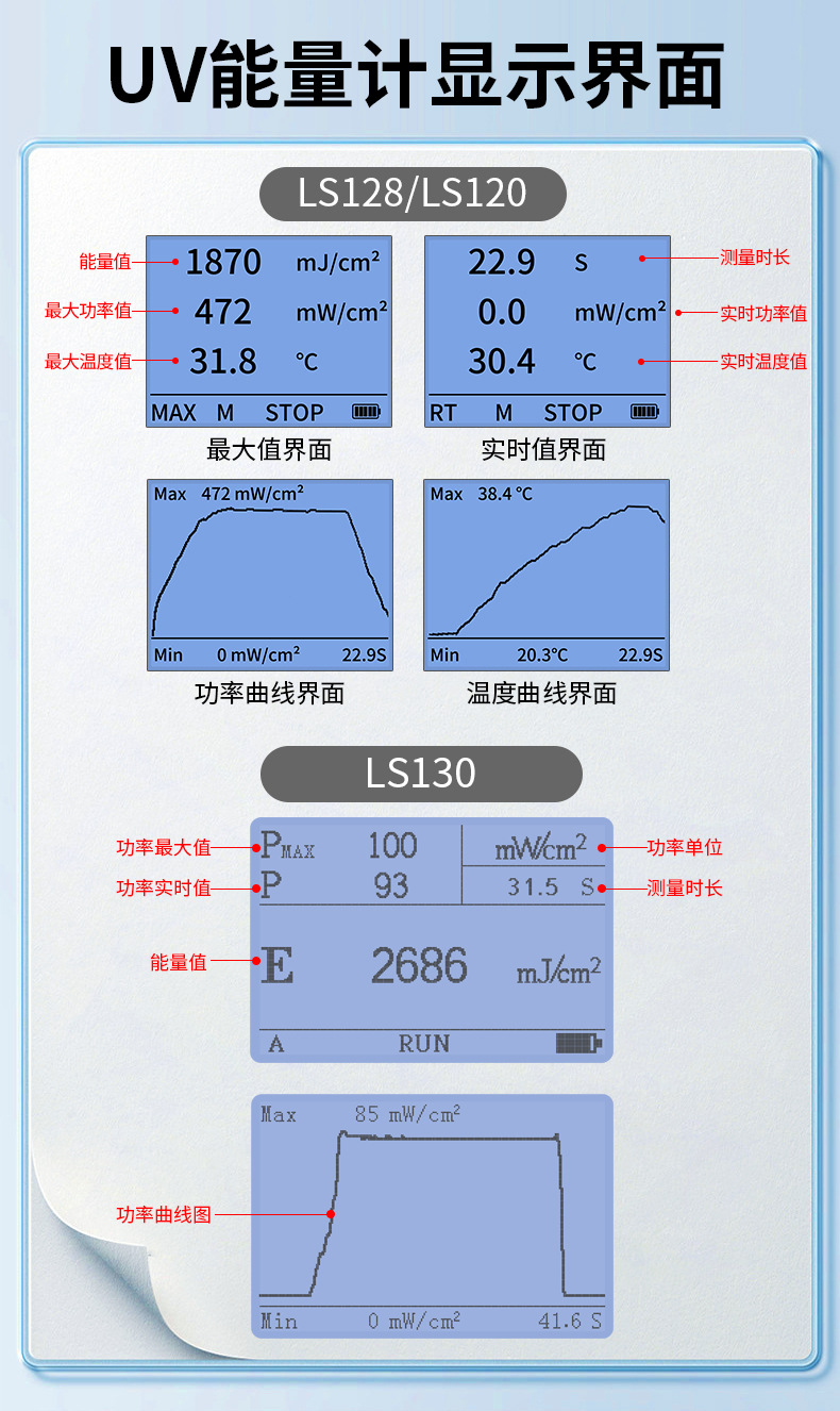 Лесной УФ-счетчик энергии LS120 Высокоточный светодиодный индикатор отверждения Ультрафиолетовый детектор УФ-излучение печи 128