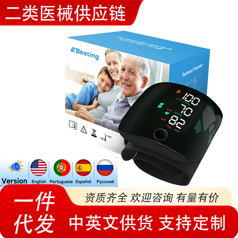 Тонометр на запястье, полностью автоматическое интеллектуальное измерение, медицинский класс, на китайском и английском языках, домашний электронный тонометр, трансграничная внешняя торговля