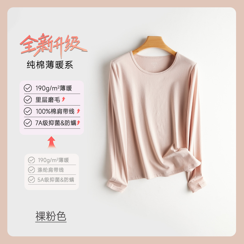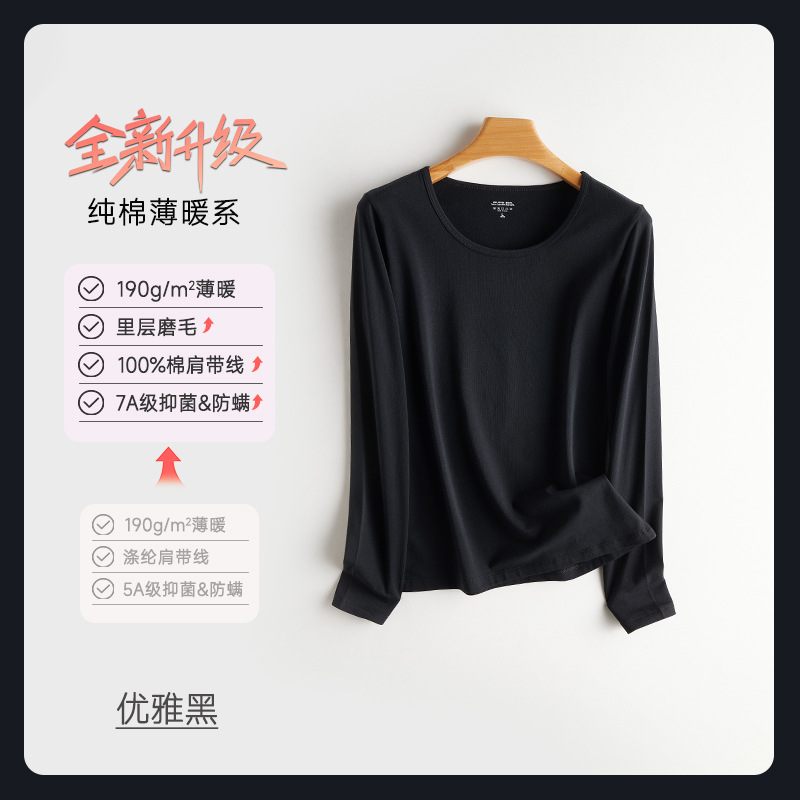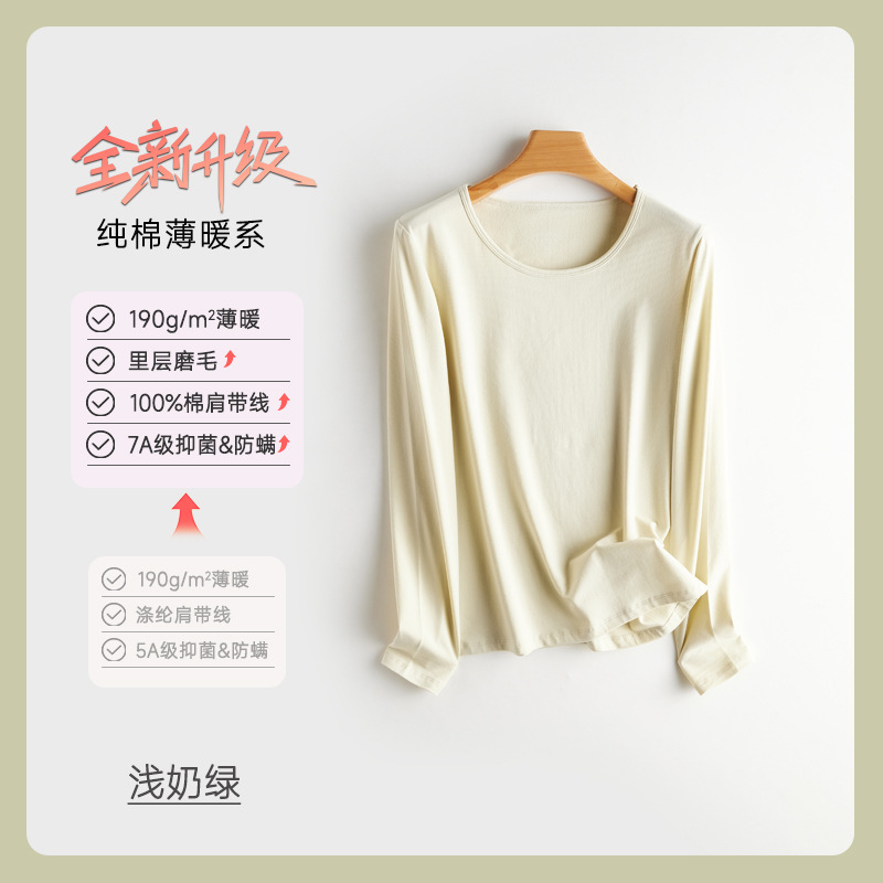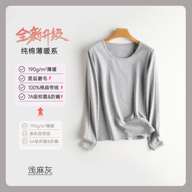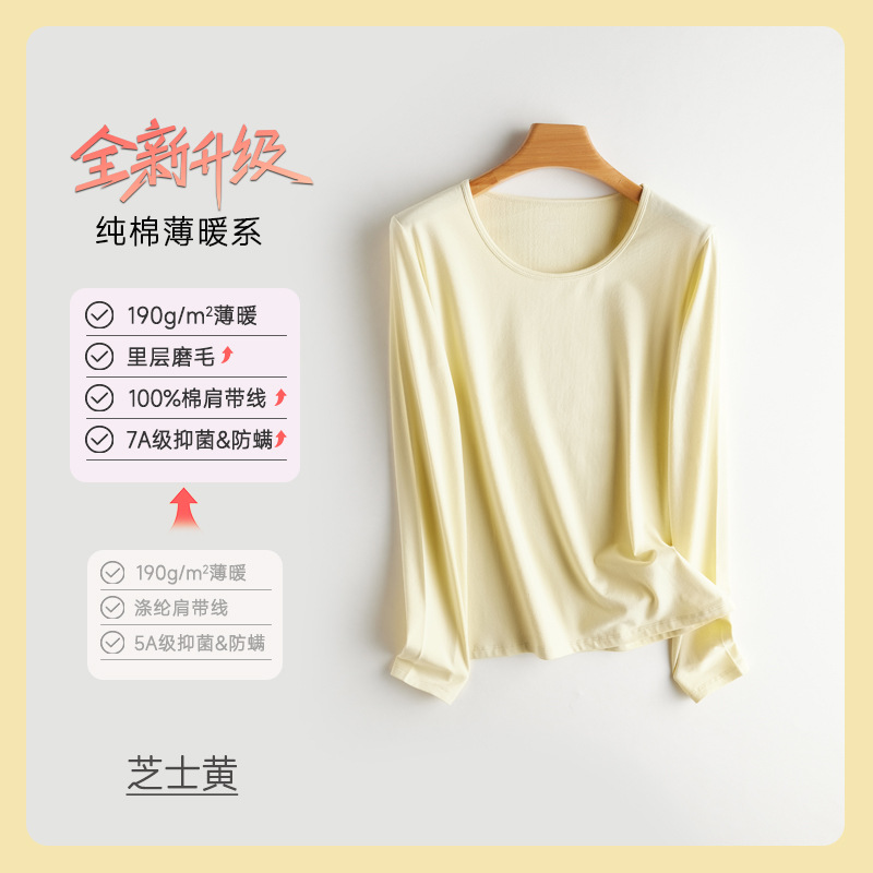 Осенняя одежда Женское однотонное нижнее белье из чистого хлопка на весну и осень, Женская цельная внутренняя Базовая рубашка, хлопковый свитер, Тонкий Топ