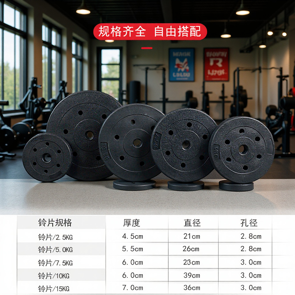 环保杠铃片规格:2.5公斤 5公斤 7.5公斤 10公斤 15公斤