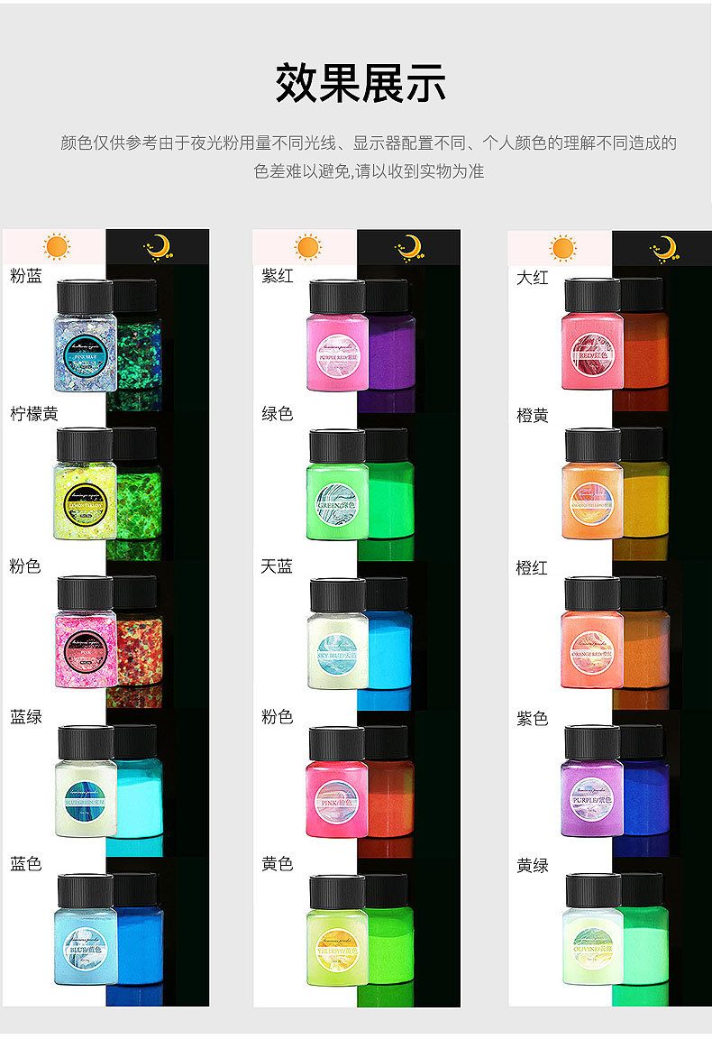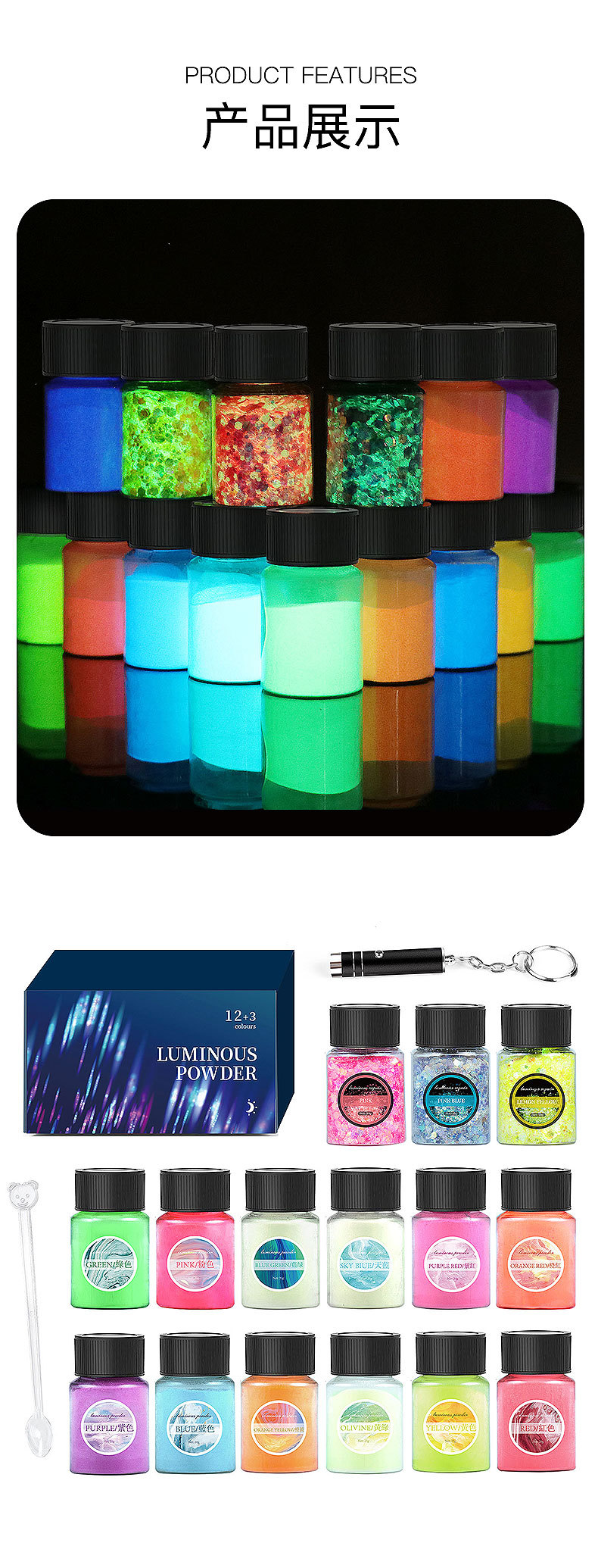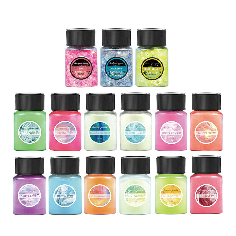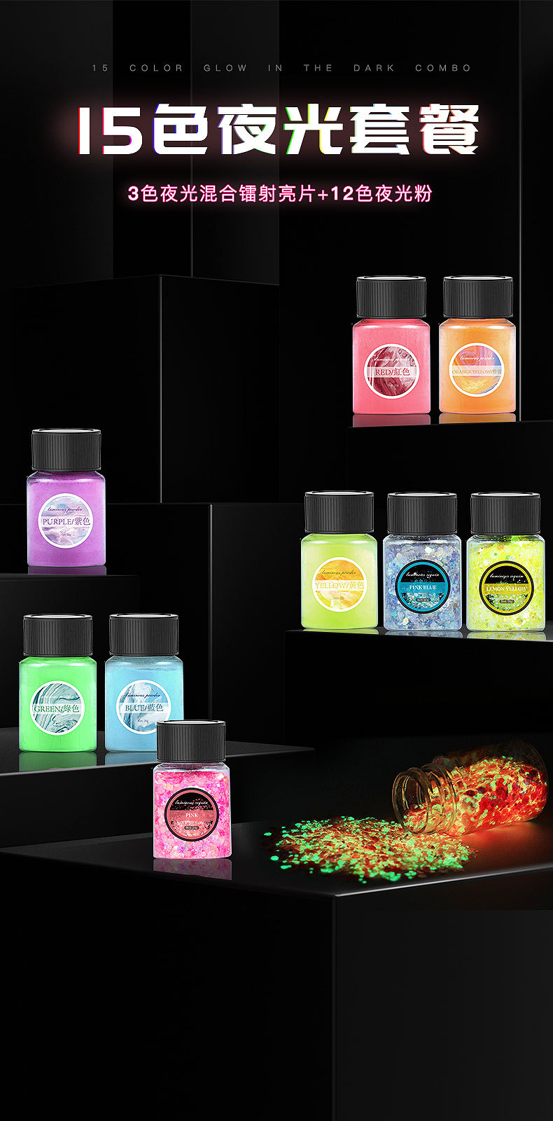 Трансграничные прямые продажи 15 цветов по выбору с длительным сроком действия светящийся светящийся порошок литья под давлением хрустальный капельный клей DIY люминесцентный порошок оптом