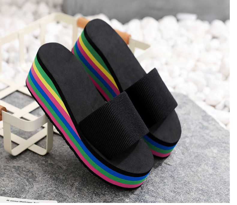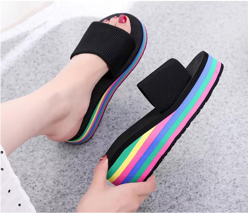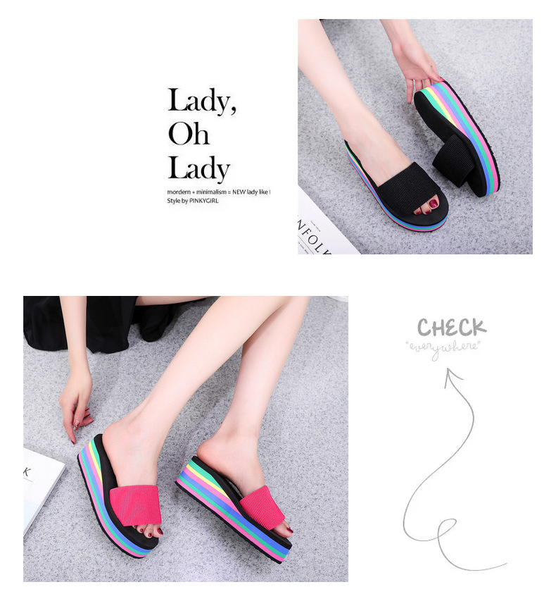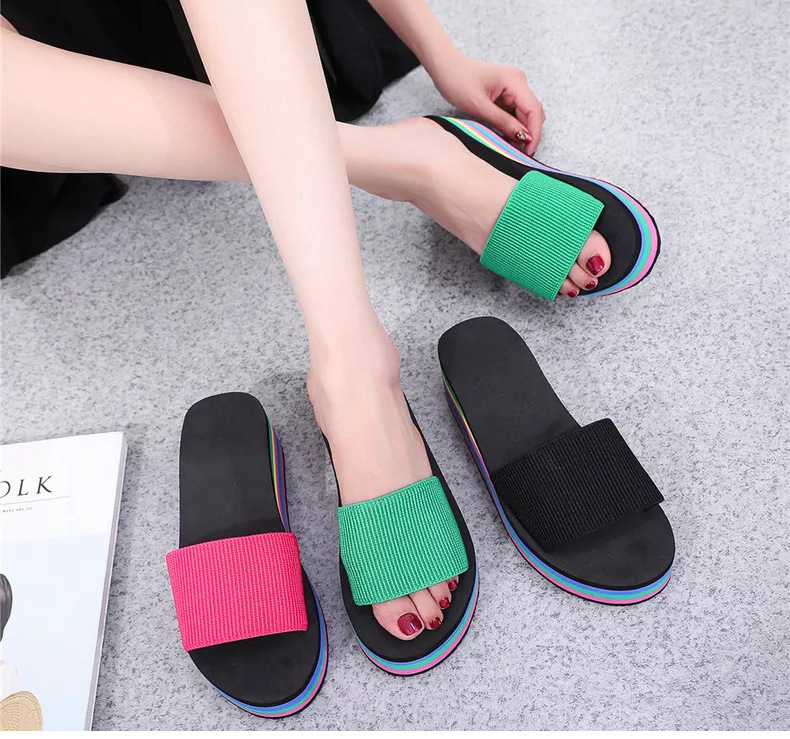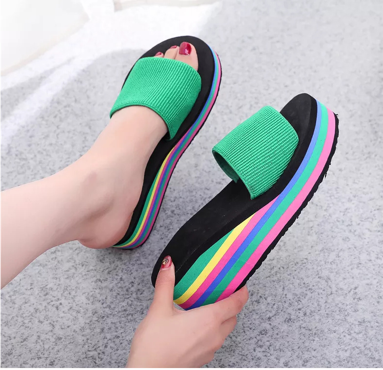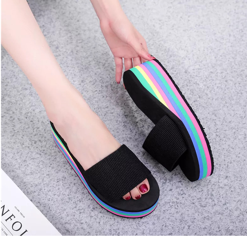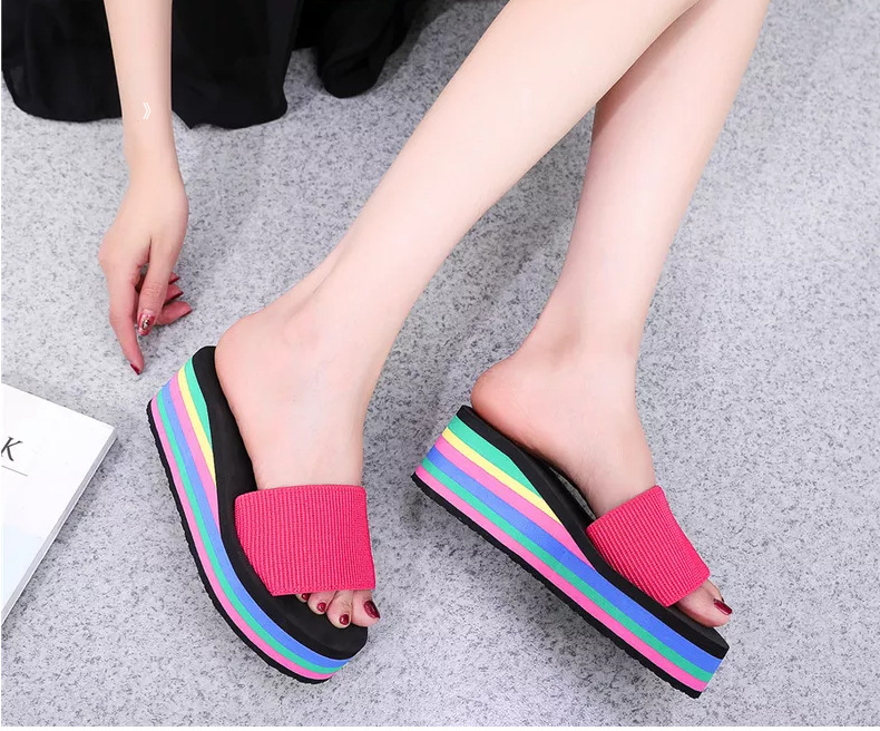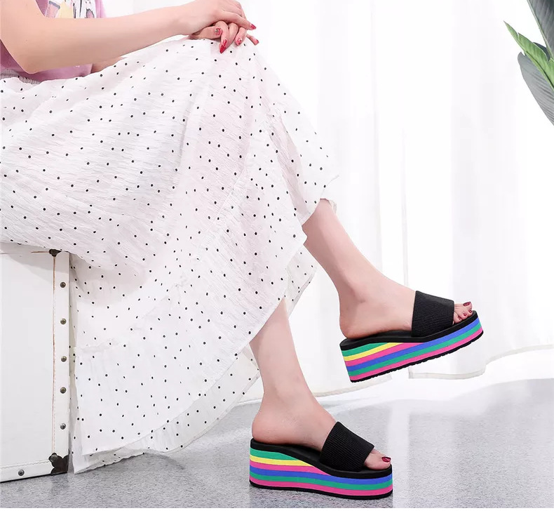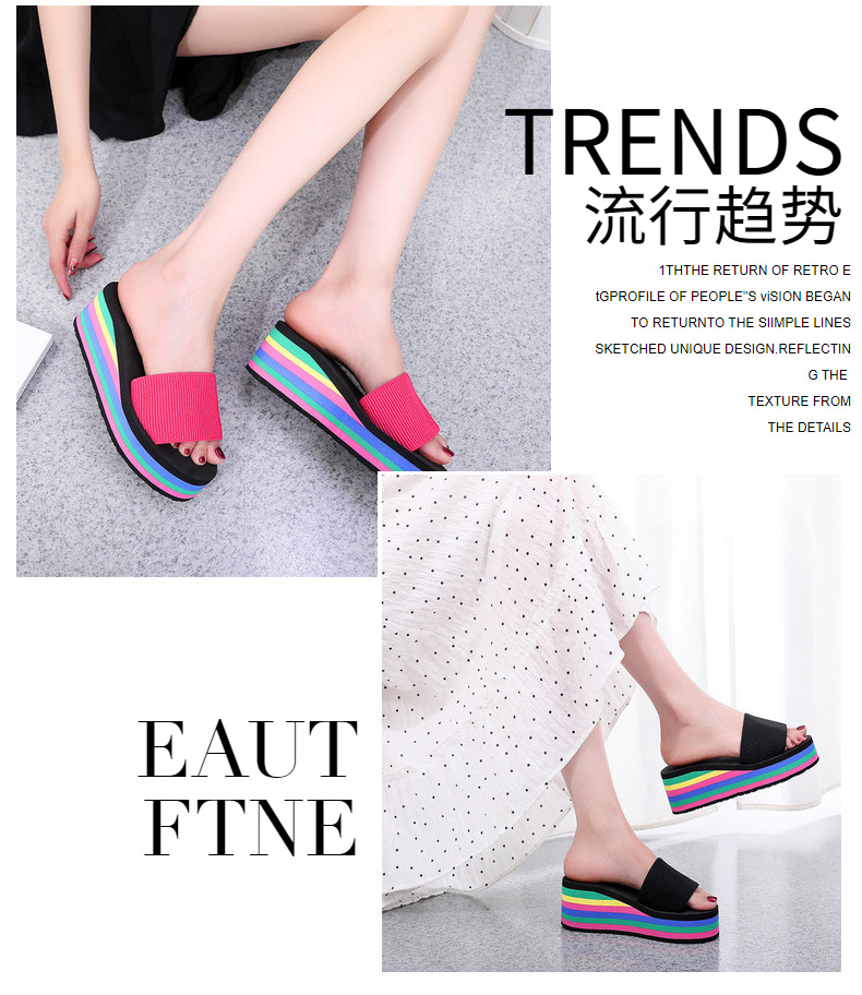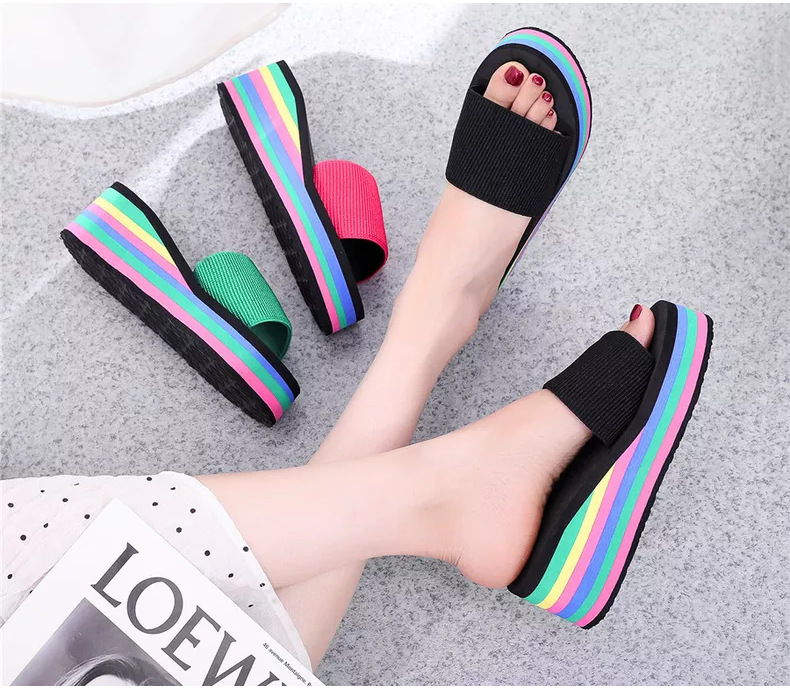 Женские тапочки, шлепанцы, женские летние радужные босоножки на толстой подошве, высокие каблуки, красочная верхняя одежда знаменитостей в Интернете, повседневный пляж.