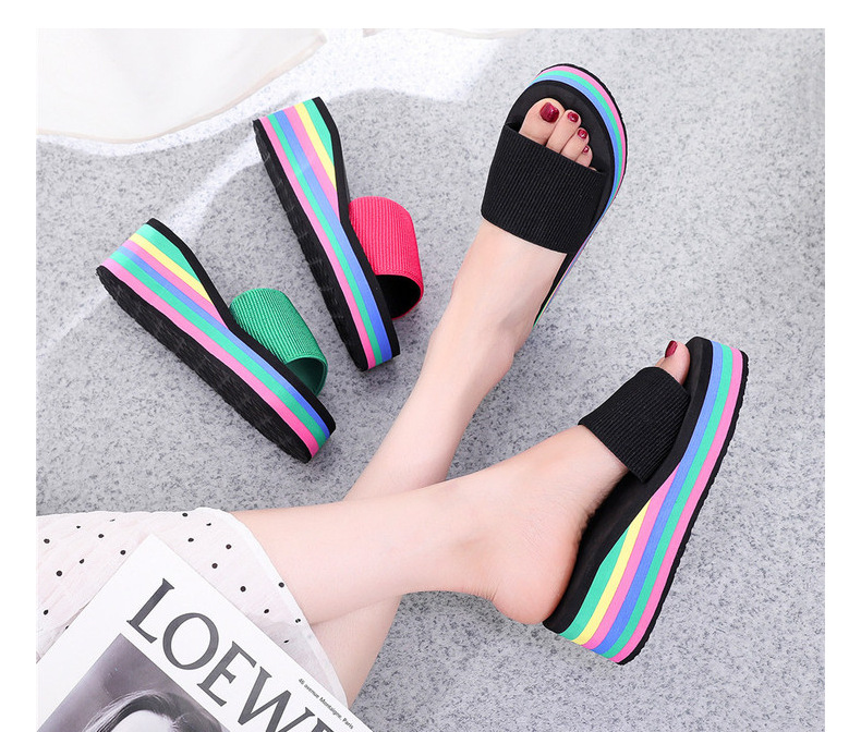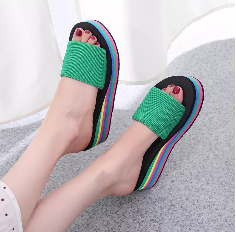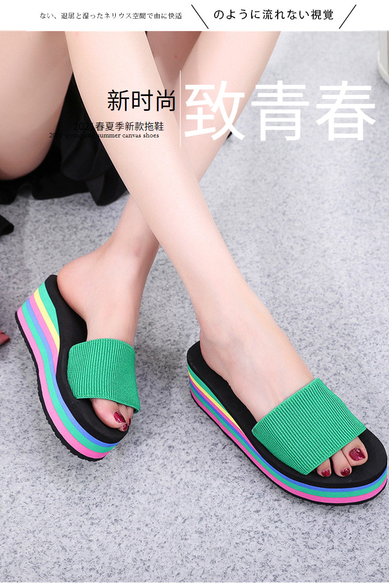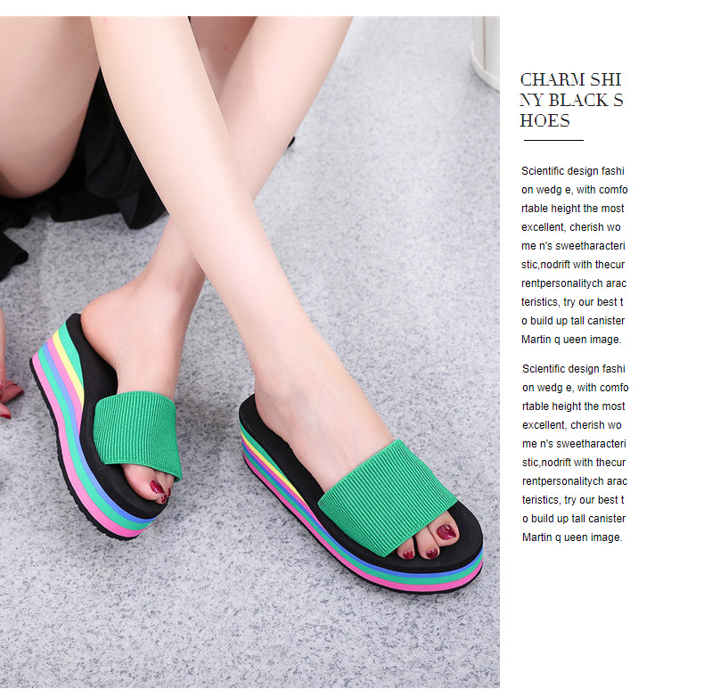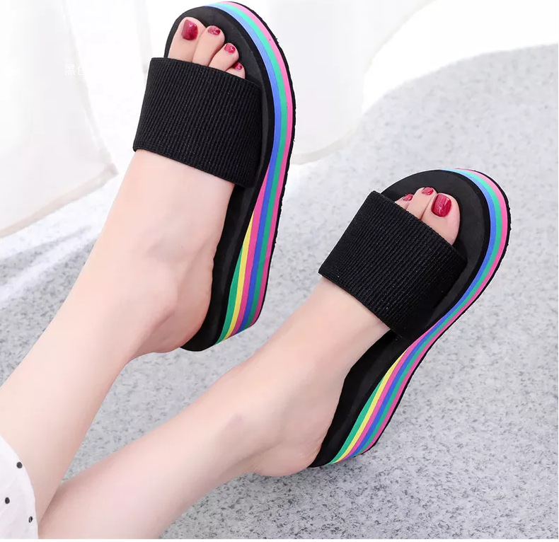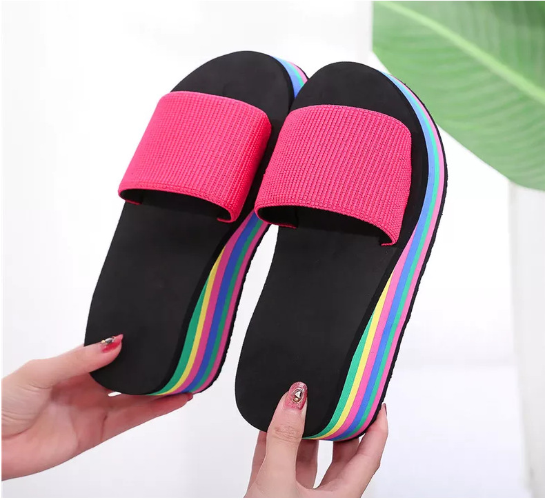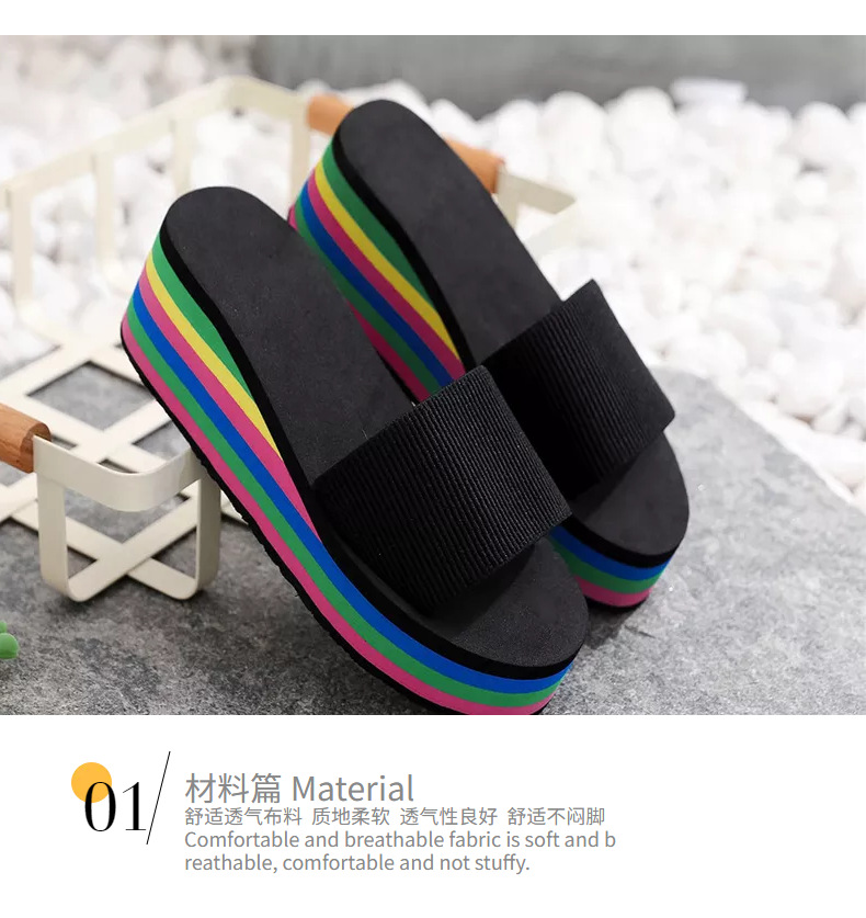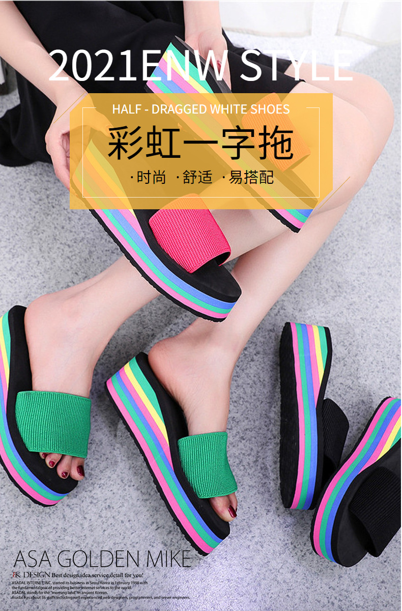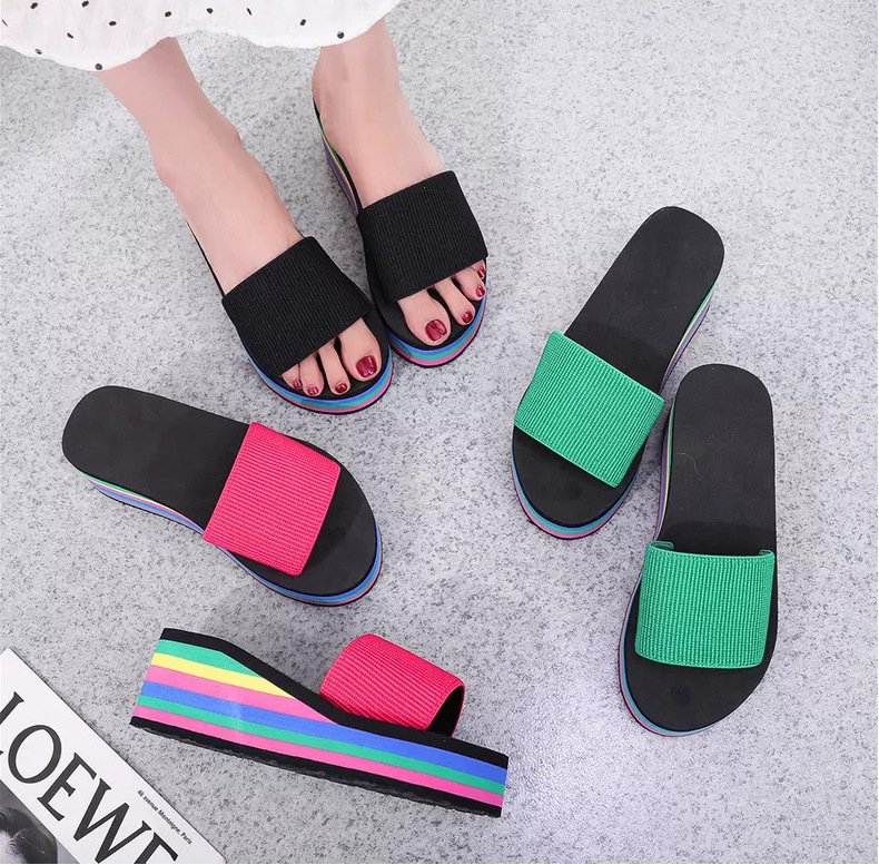 Женские тапочки, шлепанцы, женские летние радужные босоножки на толстой подошве, высокие каблуки, красочная верхняя одежда знаменитостей в Интернете, повседневный пляж.