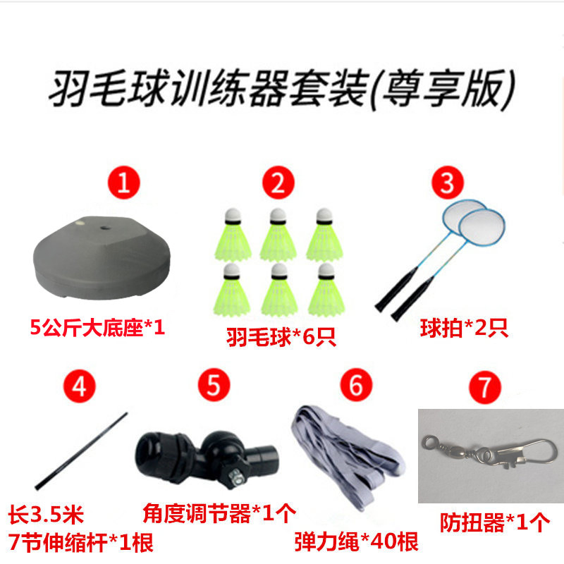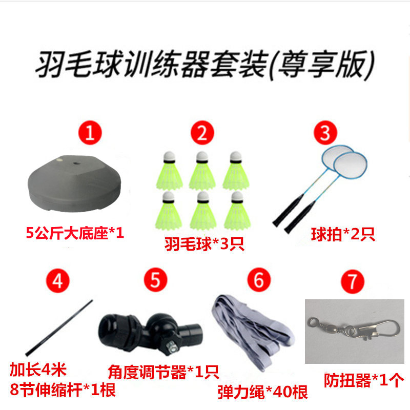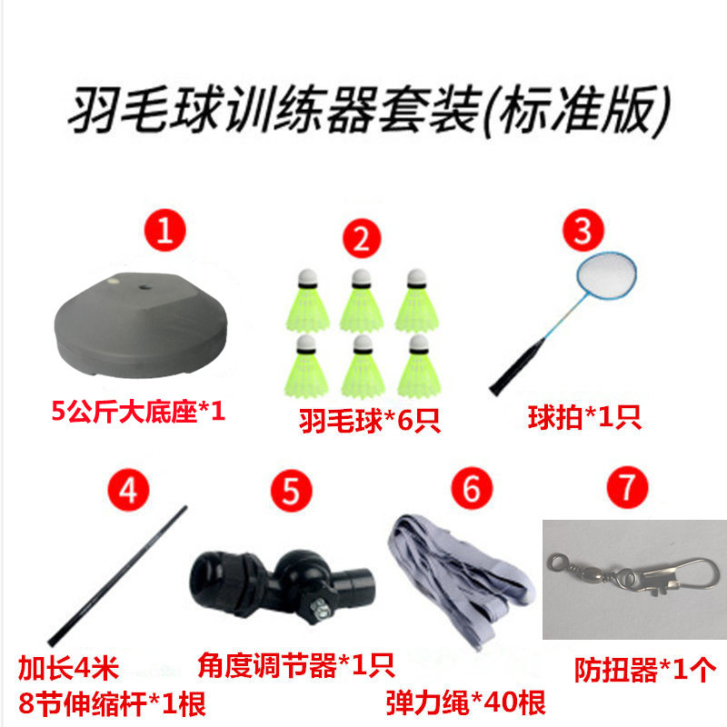 3,6-метровый телескопический клюшка (набор тренажера для бадминтона) 3 мяча; 3,6-метровый телескопический клюшка (набор тренажера для бадминтона) 6 мячей; 3,6-метровый телескопический полюс (набор тренажера для бадминтона) 1 ракетка 6 мячей; 3,6-метровый телескопический клюшка (набор тренажера для бадминтона) 2 ракетки 6 мячей; 4 м телескопический стержень (набор тренажера для бадминтона) 3 мяча; 4 м телескопическая клюшка (набор тренажера для бадминтона) 6 мячей; 4 м телескопическая клюшка (набор тренажера для бадминтона) 1 ракетка 6 мячей; 4 м телескопическая клюшка (набор для тренировки бадминтона) 2 ракетки 6 мячей; 5 кг большой базы 3,6 м 1 мяч (базовая версия); 5 кг большой базы 3,6 м 6 шаров (усиленная версия); 5 кг большой базы 3,6 м удар 1 ракетка 6 мячей (стандартная версия); 5 кг большой базы 3,6 метра, 2 ракетки, 6 мячей (эксклюзивная версия); 5 кг большой базы 4 м 1 мяч (базовая версия); 5 кг большой базы 4 метра 6 мячей (усиленная версия); 5 кг большой базы 4 м удар 1 ракетка 6 мячей (стандартная версия); 5 кг большой базы 4 метра 2 ракетки 6 мячей (эксклюзивная версия)