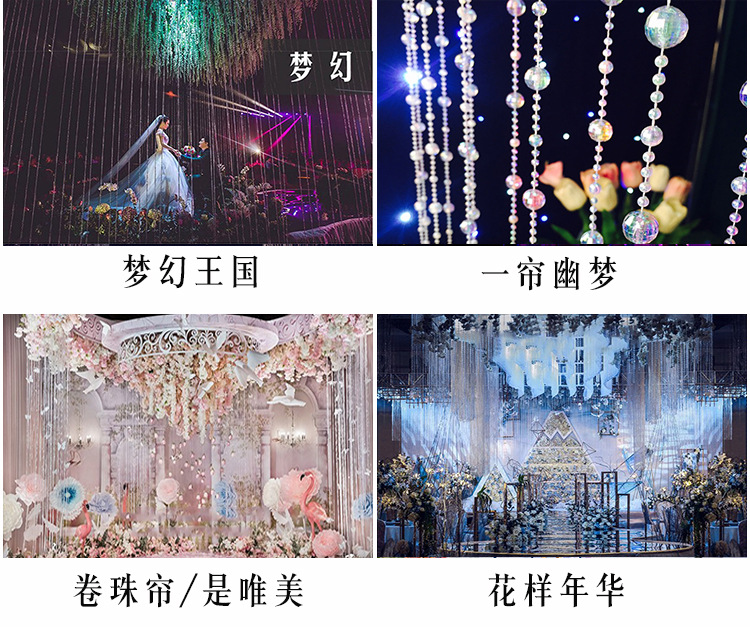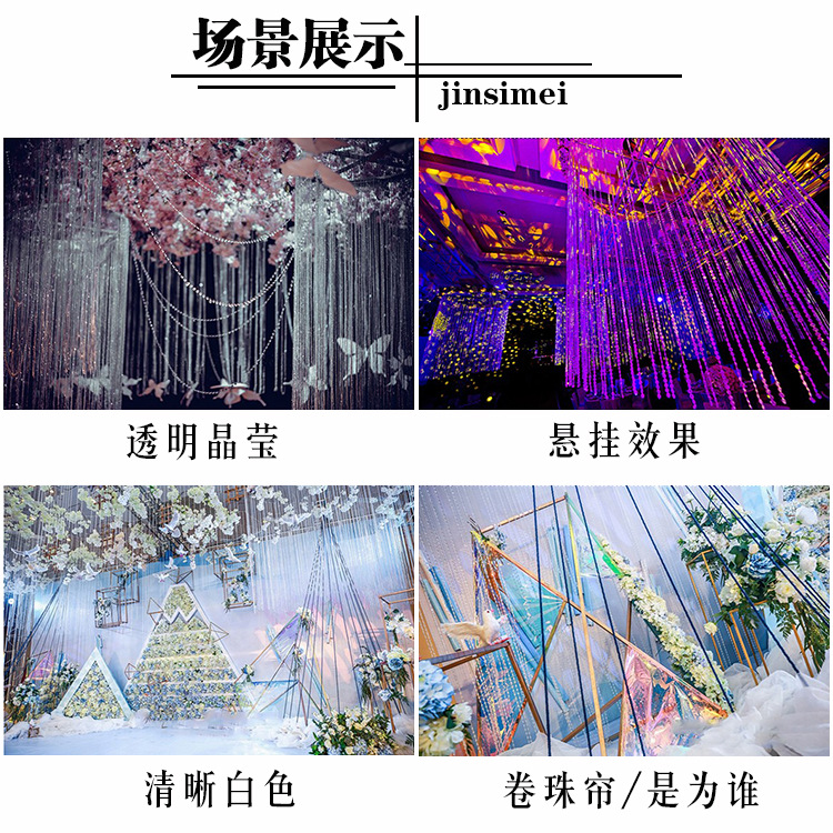 实用范围:非常适用于婚庆路引悬挂,效果非常好,非常流行,也可以做门帘 隔断 背景 橱窗 婚庆路引 水晶树 圣诞树装饰等等