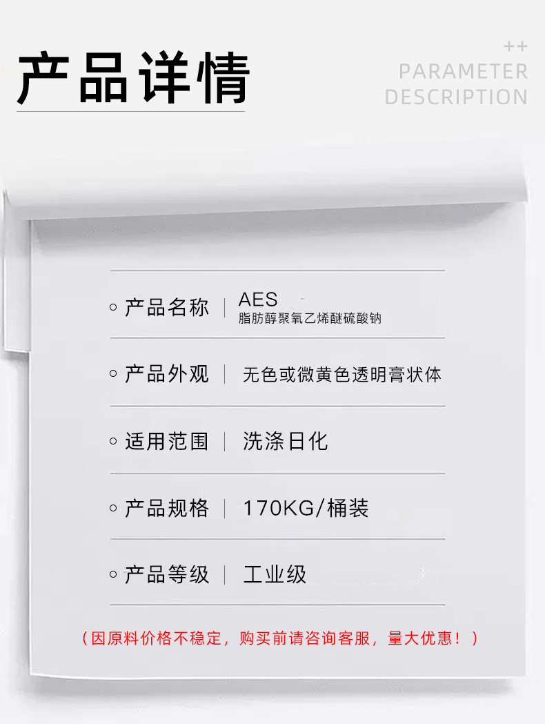 aes洗涤原料去污乳化发泡用增稠剂脂肪醇聚氧乙烯醚表面活性剂aesaes洗涤原料去污乳化发泡用增稠剂脂肪醇聚氧乙烯醚表面活性剂aes