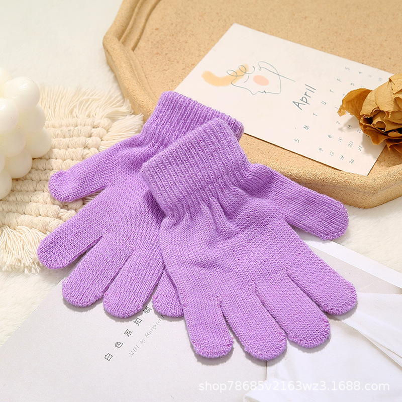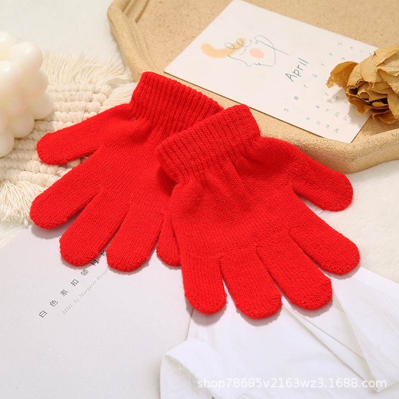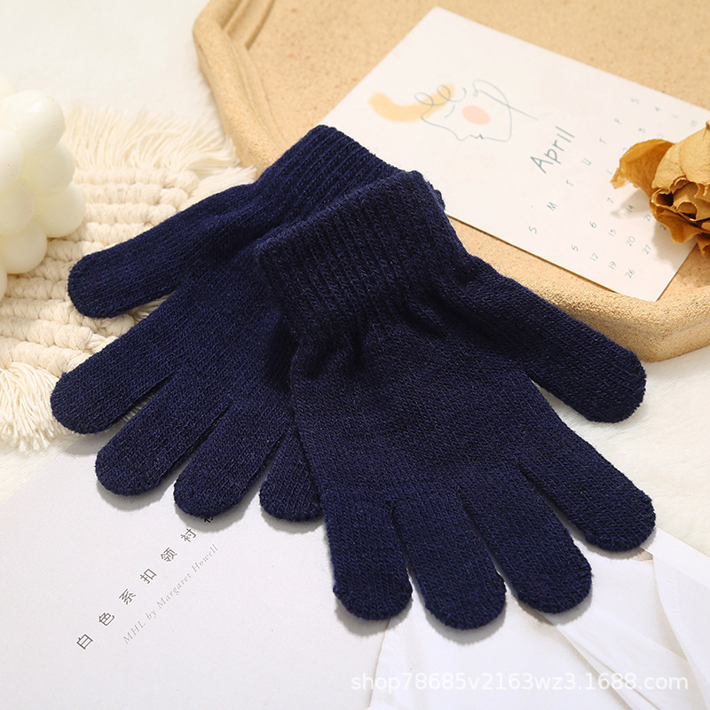 Весенне-осенние теплые перчатки с защитой от холода и письма для студентов, однотонные утолщенные хлопчатобумажные пряжи, детские перчатки, эластичные перчатки с пятью пальцами